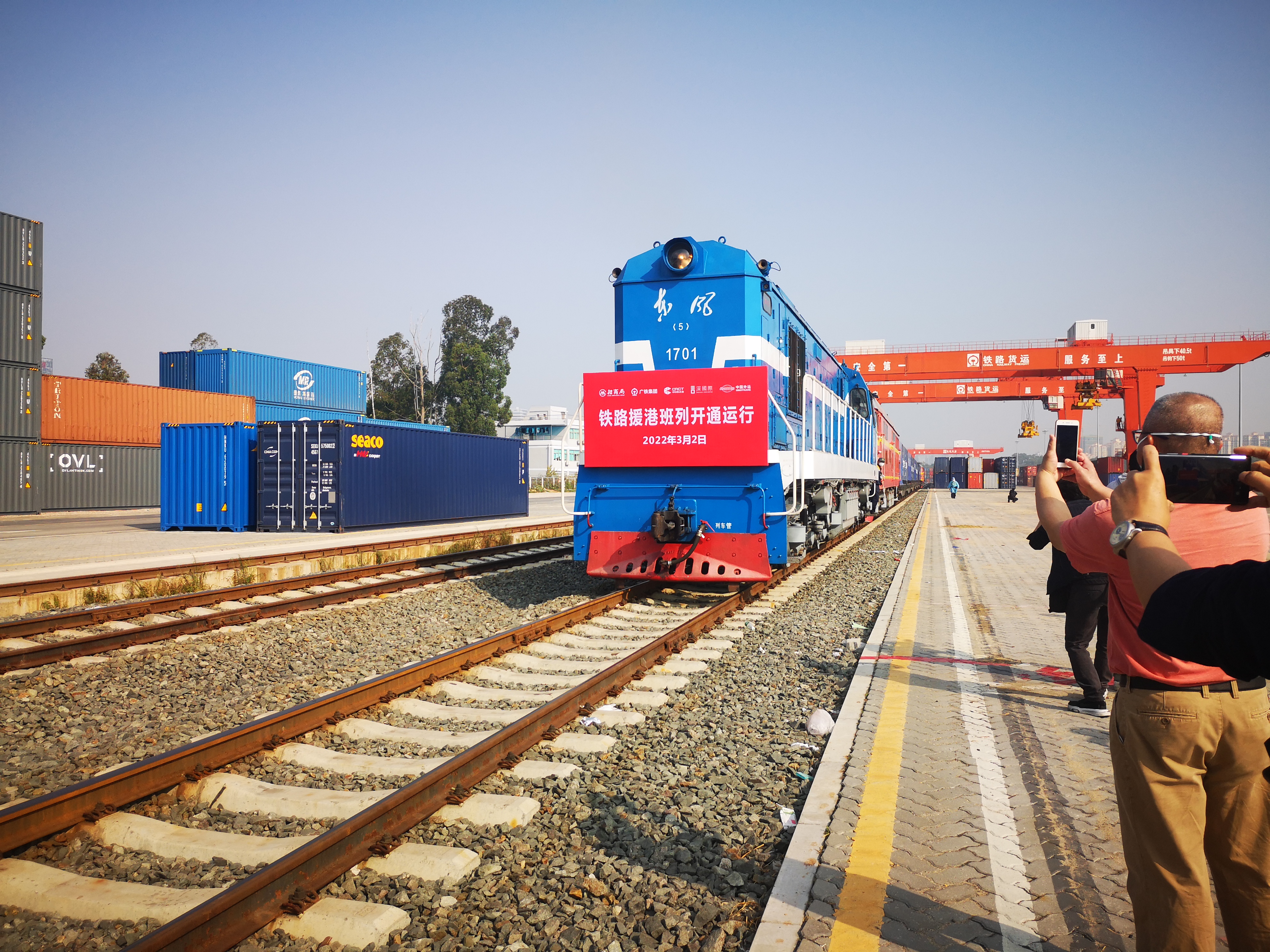 據廣鐵集團貨運部介紹,該班列共有18個集裝箱,實行一站直達運輸,中途不停靠站點,直接在平湖南貨場安排出入港檢查和防控管理。鐵路援港班列開行初期將按照每日1趟開行,前期運輸防疫民生重點物資,後續還將根據需求增加保障。鐵路援港班列的開行,將有效解決跨港運輸時效長等問題,將進一步緩解公路、水路口岸運輸壓力。