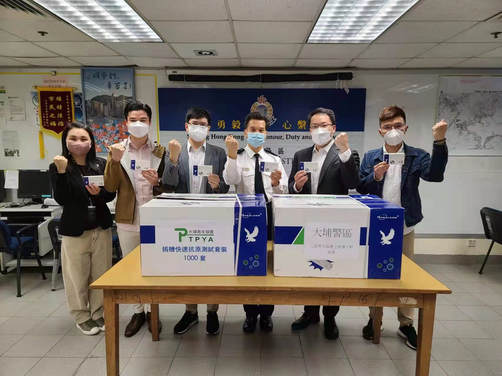 大公文匯全媒體報道,香港第五波疫情持續嚴峻,確診個案由每日過千宗攀升至每日過萬宗,累計已有615間院舍爆疫,不少院舍大批員工染疫,陷人手荒。新界各界發動社區團體緊急募集物資,並組織人員將一箱箱快速抗原檢測包及N95口罩等抗疫物資贈予有需要人士。當中,荃灣地區抗疫連線就將200套服裝及面罩轉贈廣福護老院;大埔青年協會、北區青年協會等青年團體則自籌2000套快速檢測劑捐贈給大埔警署。
