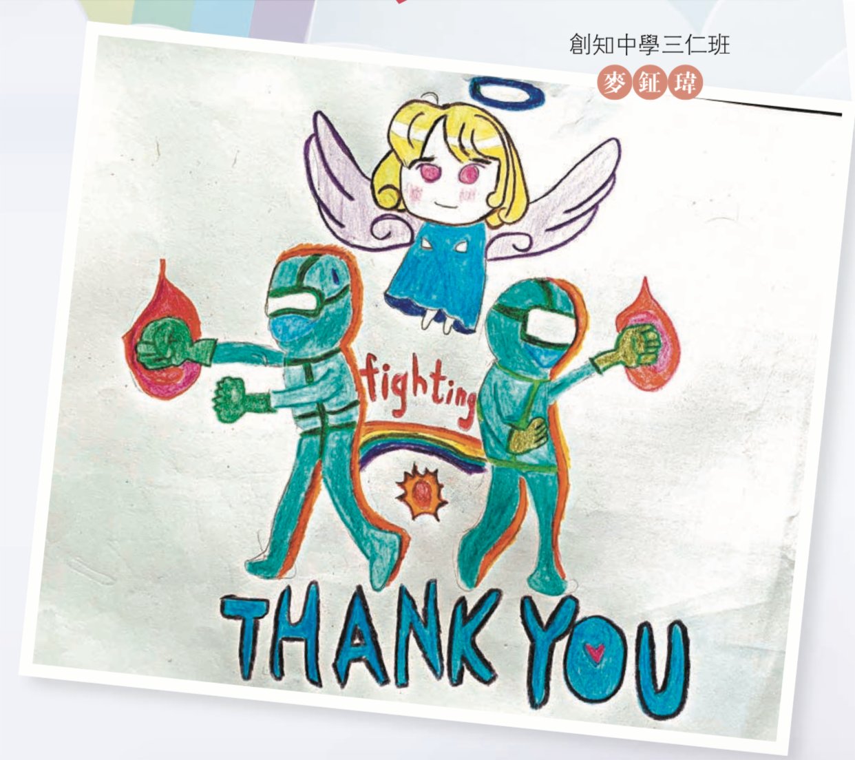 香港文匯報日前組織來自多所中小學及幼稚園的學生,以鼓勵信、畫作或短片等方式分享抗疫心聲並陸續刊登,向醫護、清潔工、的士司機、義工等現正處身抗疫前線的工作者,以及其他市民大眾送上慰問和祝福。疫境前行,沿途有您,也有下一代於背後的默默支持。