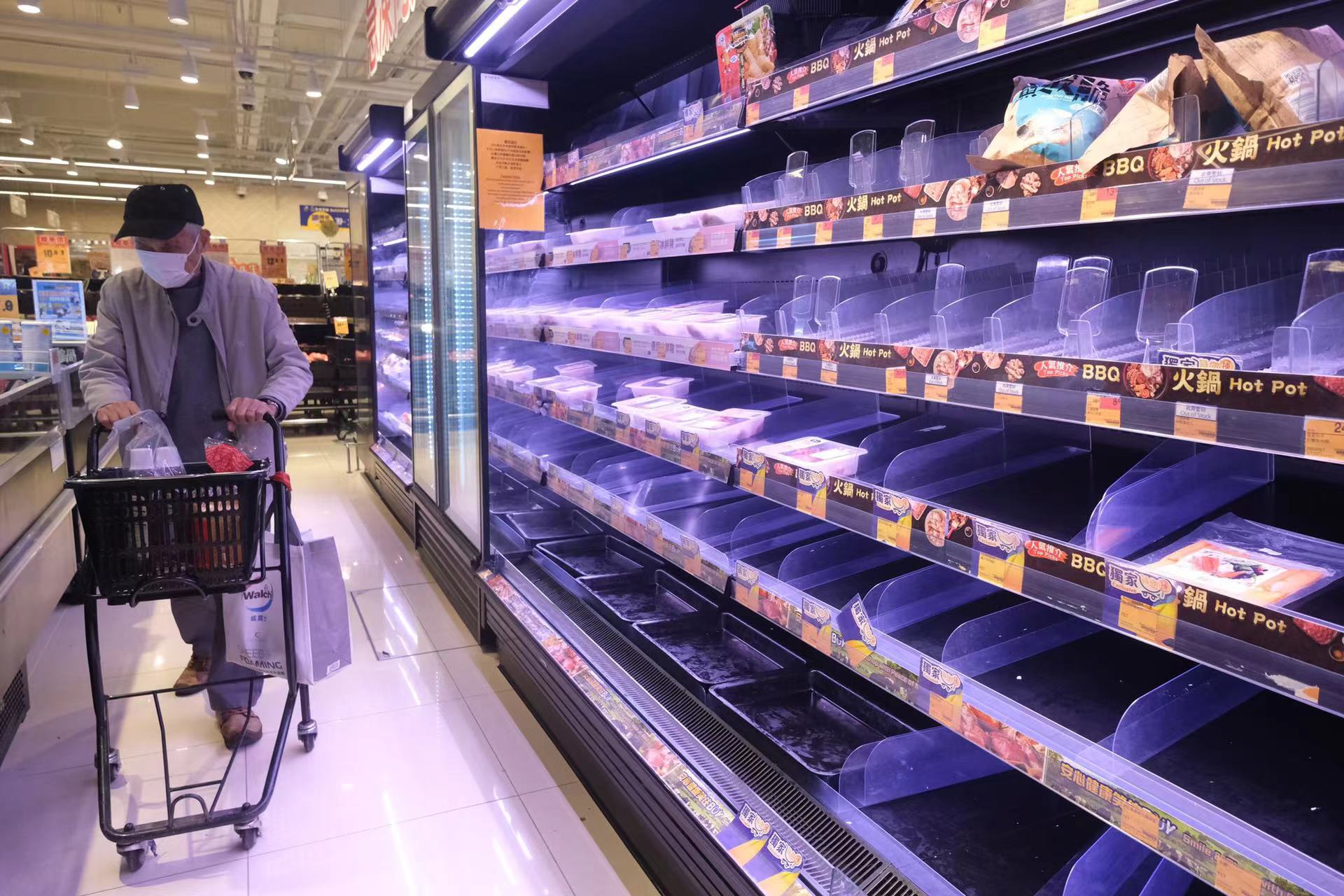大公文匯全媒體報道,本港第五波疫情嚴峻,不少市民紛紛搶購食物及退燒藥品,近日多間超市貨架被搶購一空,退燒止痛藥品更是極度緊缺。