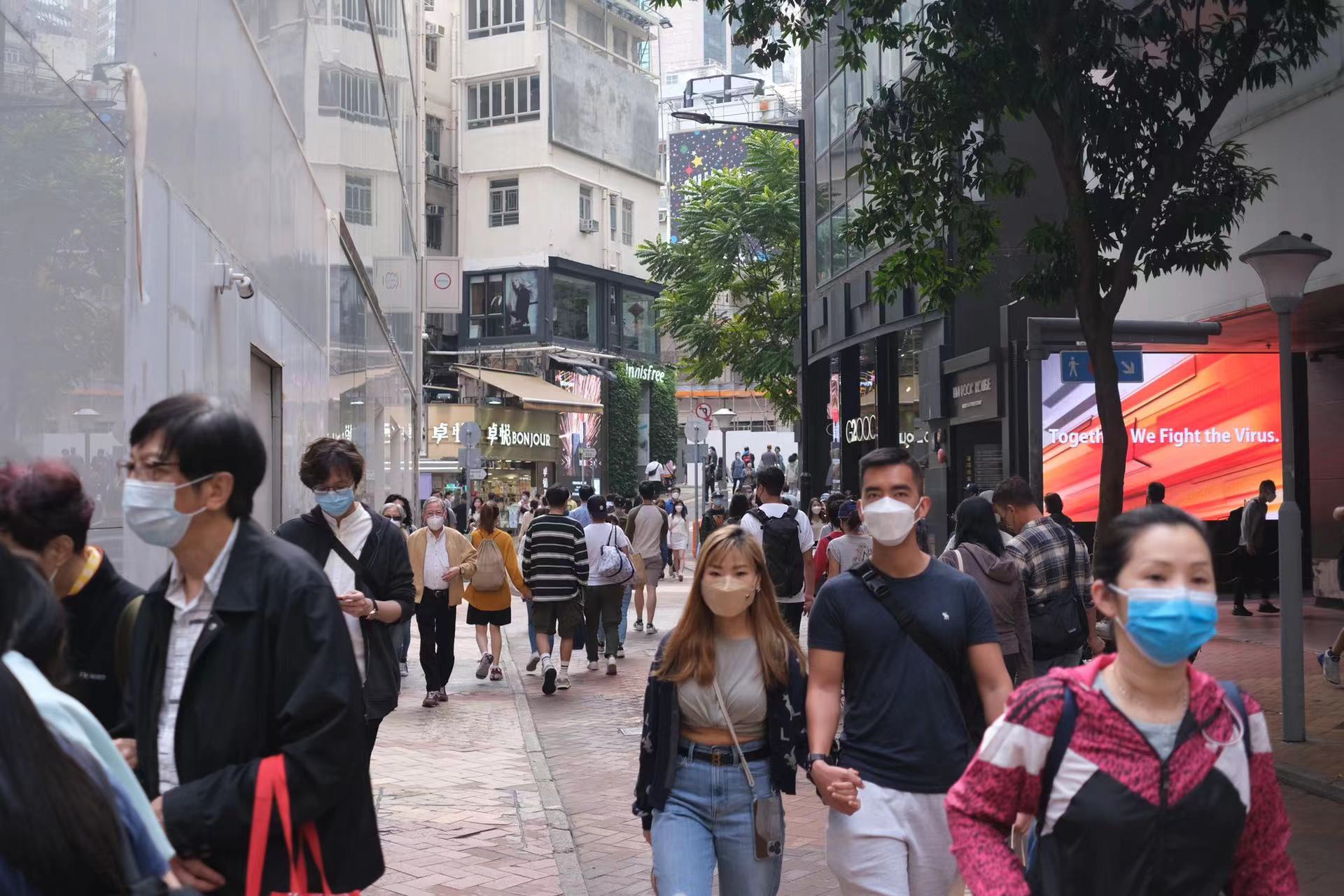 大公文匯全媒體報道,本港疫情持續,確診數字始終高企。今日(5日)新增37529宗確診個案,累計已有440609宗。全媒體記者今日見到,銅鑼灣人頭湧湧、商販依舊正常營業;出街的市民全部帶好口罩,做足防護措施。