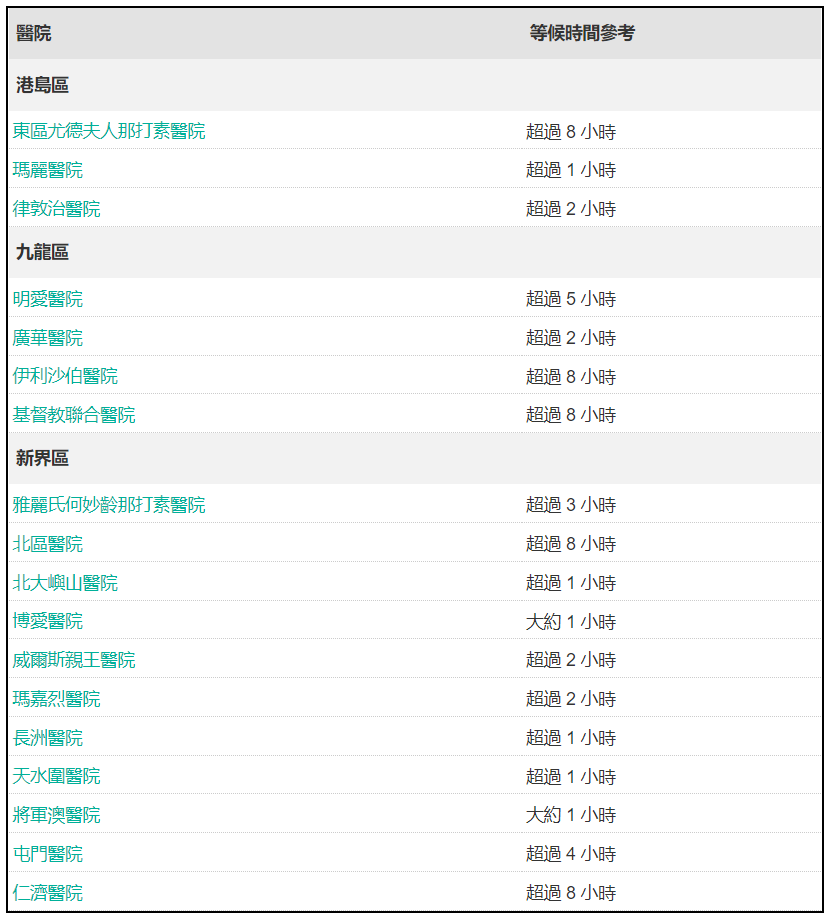全港18間公立醫院急症室不斷更新的輪候時間,可點此查閱。