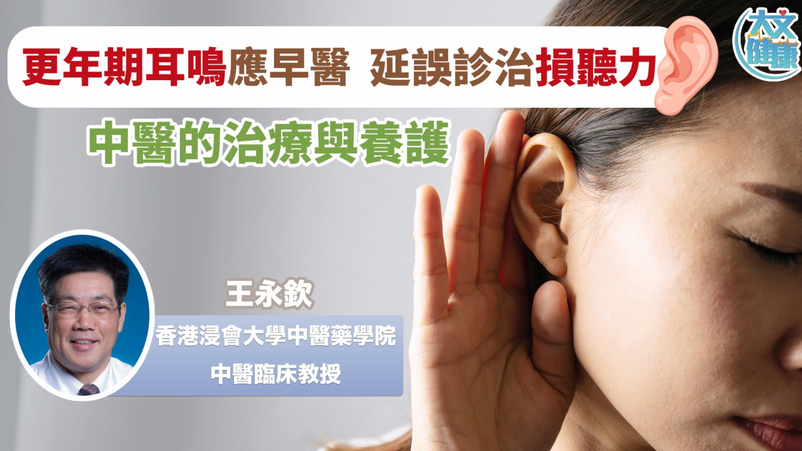 中醫認為,更年期耳鳴多由陰陽失調,陰虛陽亢,虛火上升,擾亂聽神,或心肝鬱熱,心陰不足,血不養神,耳失靜謐所致,早期治療效果良好。倘若失於治療,耳鳴持續,不僅損傷聽力,而且易成耳鳴痼疾。