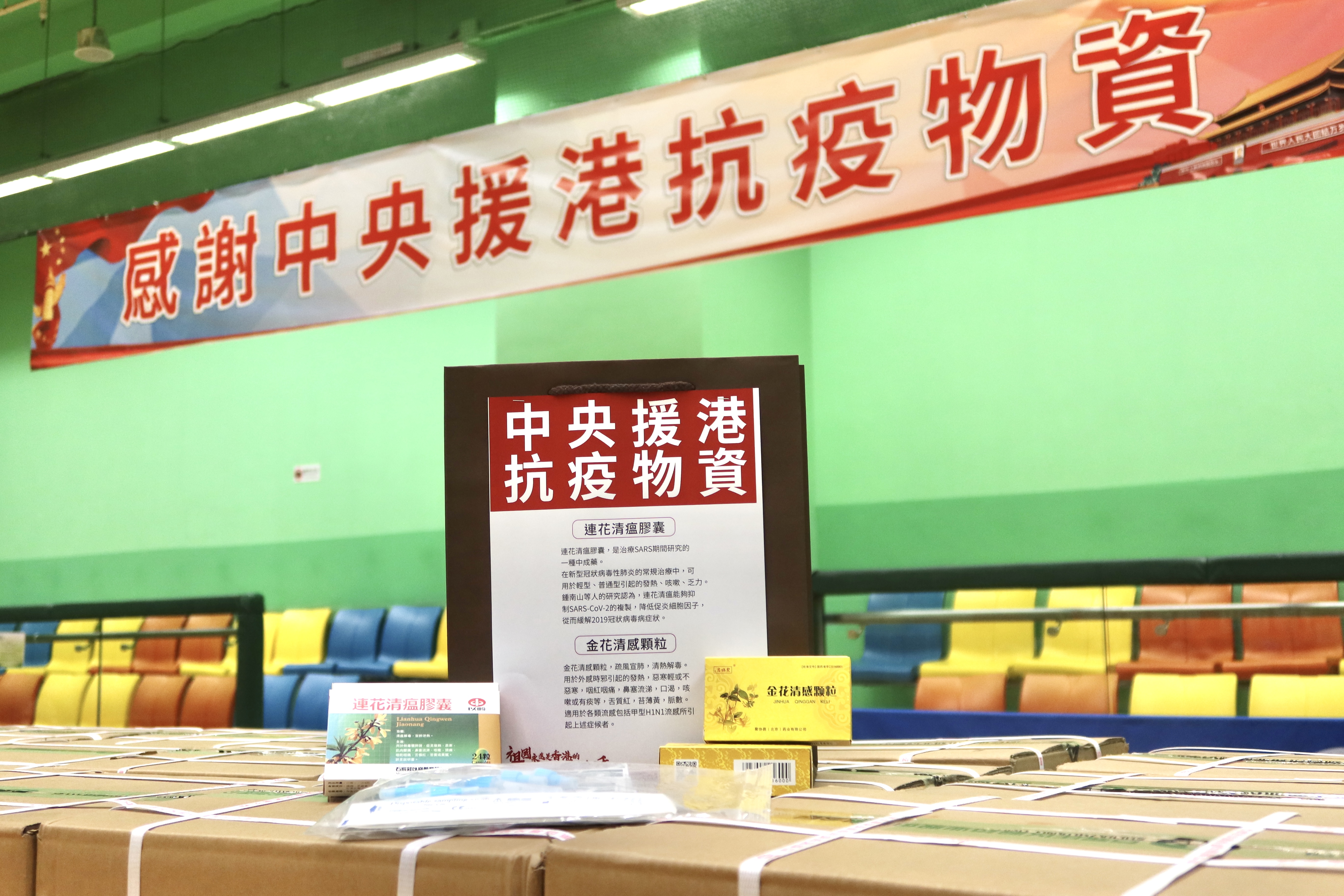 在中成藥方面,連同陸續到港的批次,工作小組共接收45萬盒由國家捐贈的抗疫中成藥。其中共17萬盒已透過「全港社區抗疫連線」及其他熱心社團在社區派發,另外部分正透過食物及衞生局向因應限制與檢測宣告而須接受「圍封強檢」的居民派發。其餘已到港的中成藥物正透過相關部門,分發給在醫管局轄下18間中醫診所接受治療的人士及在隔離設施的確診患者等,讓有需要的市民盡快獲得這些中央捐贈的中成藥,齊心抗疫。