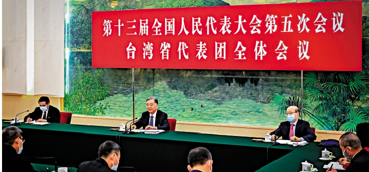 大公報綜合新華社、中新社報道:中共中央政治局常委、全國政協主席汪洋9日上午參加十三屆全國人大五次會議台灣代表團審議。