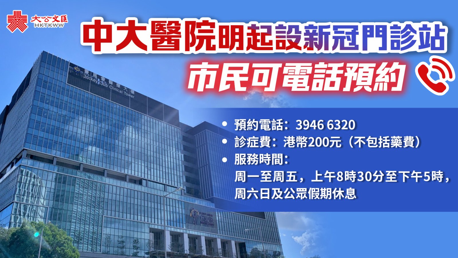 大公文匯全媒體報道,本港第五波疫情累計逾53萬人確診,公營醫院體系不勝負荷,近日陸續有私家醫院加入抗疫團隊,為新冠患者提供診症服務。香港中文大學醫院今日(10日)宣布,將設立新冠門診站,明日(11日)起正式投入服務。