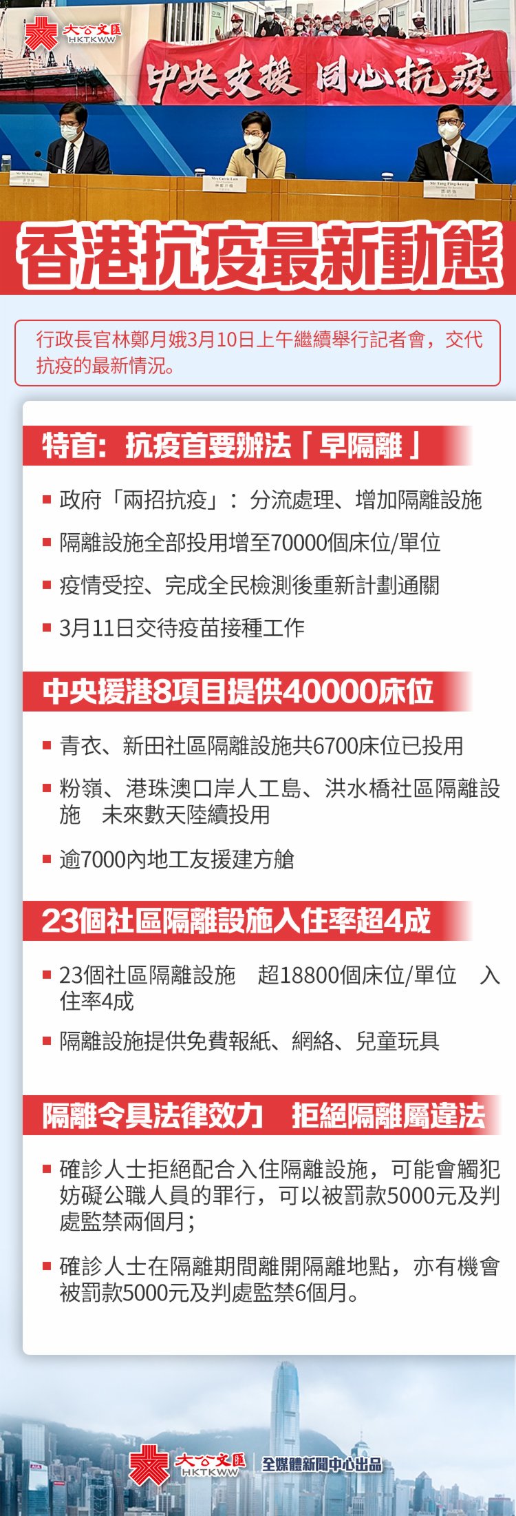 大公文匯全媒體報道,本港疫情嚴峻,昨日新增5.8萬宗確診。特首今日(10日)連同保安局局長及發展局局長出席每日政府高層新聞發布會,交代由中央援建社區隔離設施的事宜。點新聞為您整理了記者會要點,助您一文睇清!