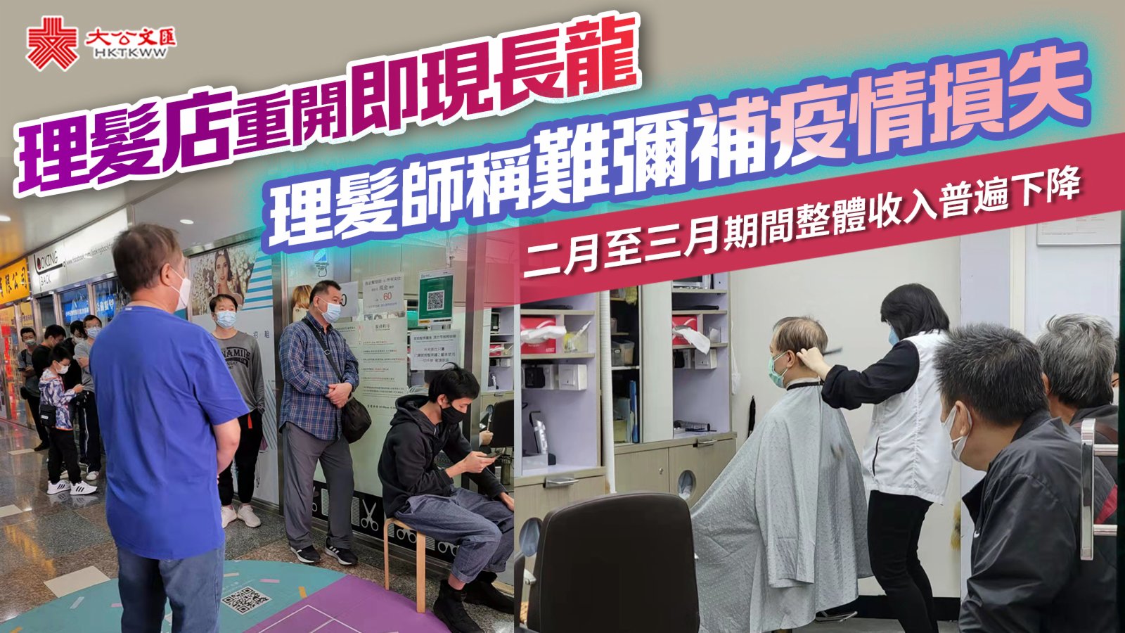 大公文匯全媒體報道,新冠疫情嚴峻,港府2月上旬大幅度收緊防疫措施,理髮店及髮型屋被納入表列處所需要關閉,直至4月20日。港府星期二(8日)宣布,理髮店及髮型屋3月10日重開,多間理髮店外今日(10日)出現人龍,不少「長髮」市民在門外等候表示,自理髮店關閉以來一直沒有機會剪髮,現在理髮店重開,終於可以與頭上的「長髮」告別。亦有理髮師表示,今日的剪髮生意雖多,可是仍然無救彌補停業及疫情帶來的損失。