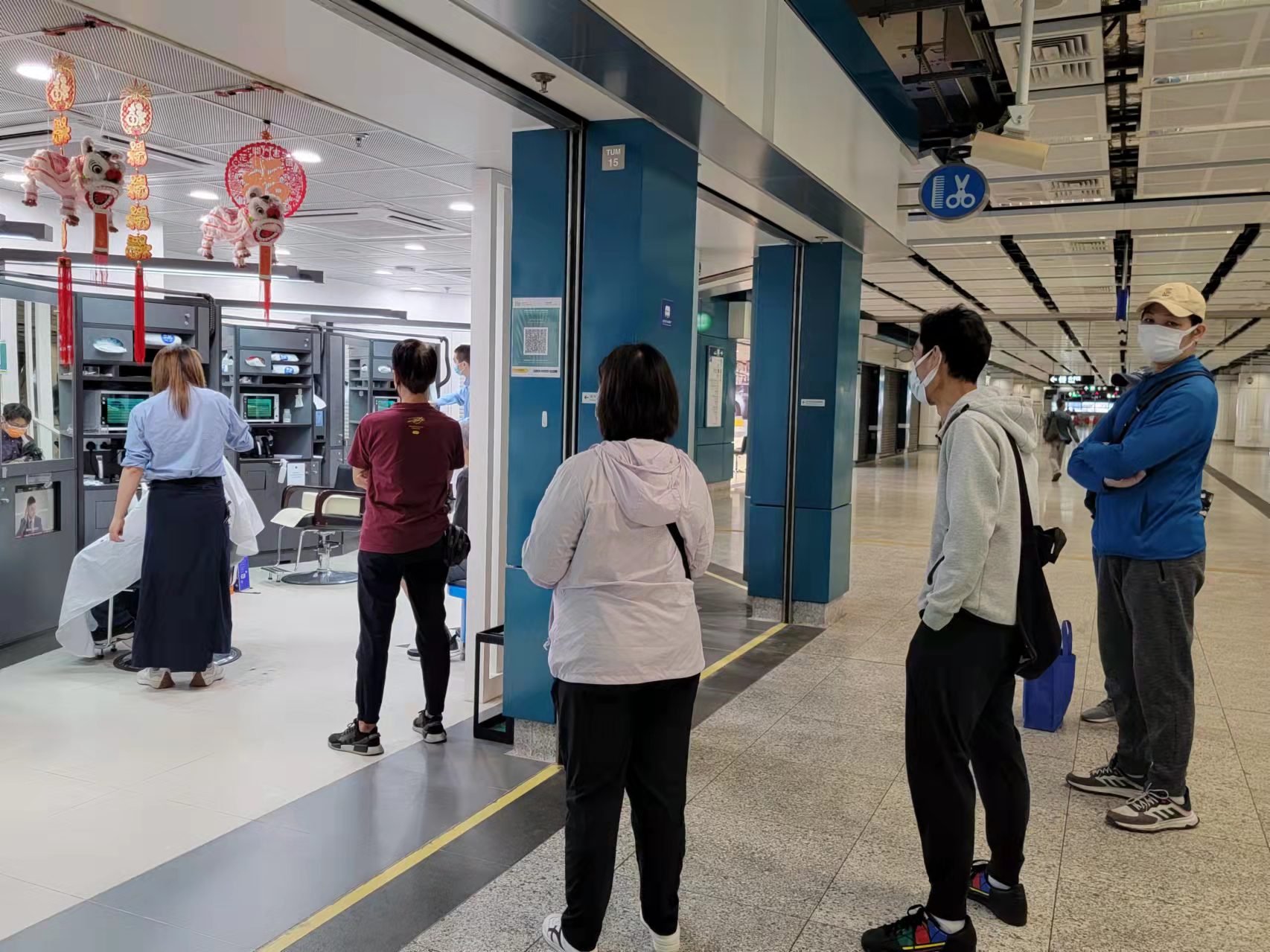 大公文匯全媒體記者今日上午到多間理髮店現場了解情況,雖然仍有部分理髮店關門,幾乎每間理髮店門外都有市民等待剪髮,當中以快速理髮店的人龍最長,店內有兩名理髮師馬不停蹄地不斷為顧客修剪,可是門外仍最少有近10人正在等候,有市民正使用「安心出行」程式認證。