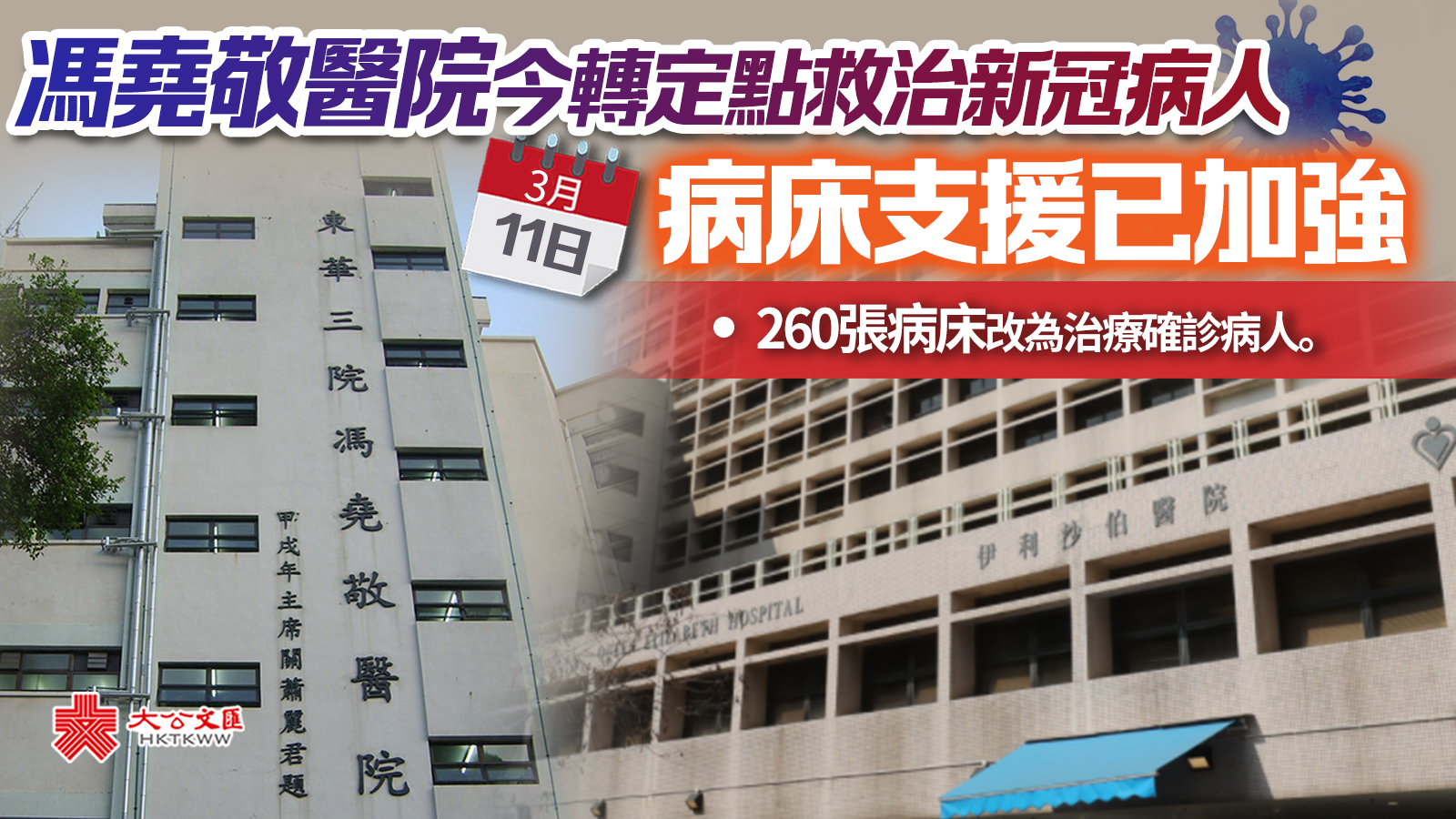 大公文匯全媒體報道,政府早前決定,將伊利沙伯醫院改為新冠指定醫院,10日起定點收治病人。此外,東華三院馮堯敬醫院今日(11日)起轉作定點救治醫院,260張病床改為治療確診病人。