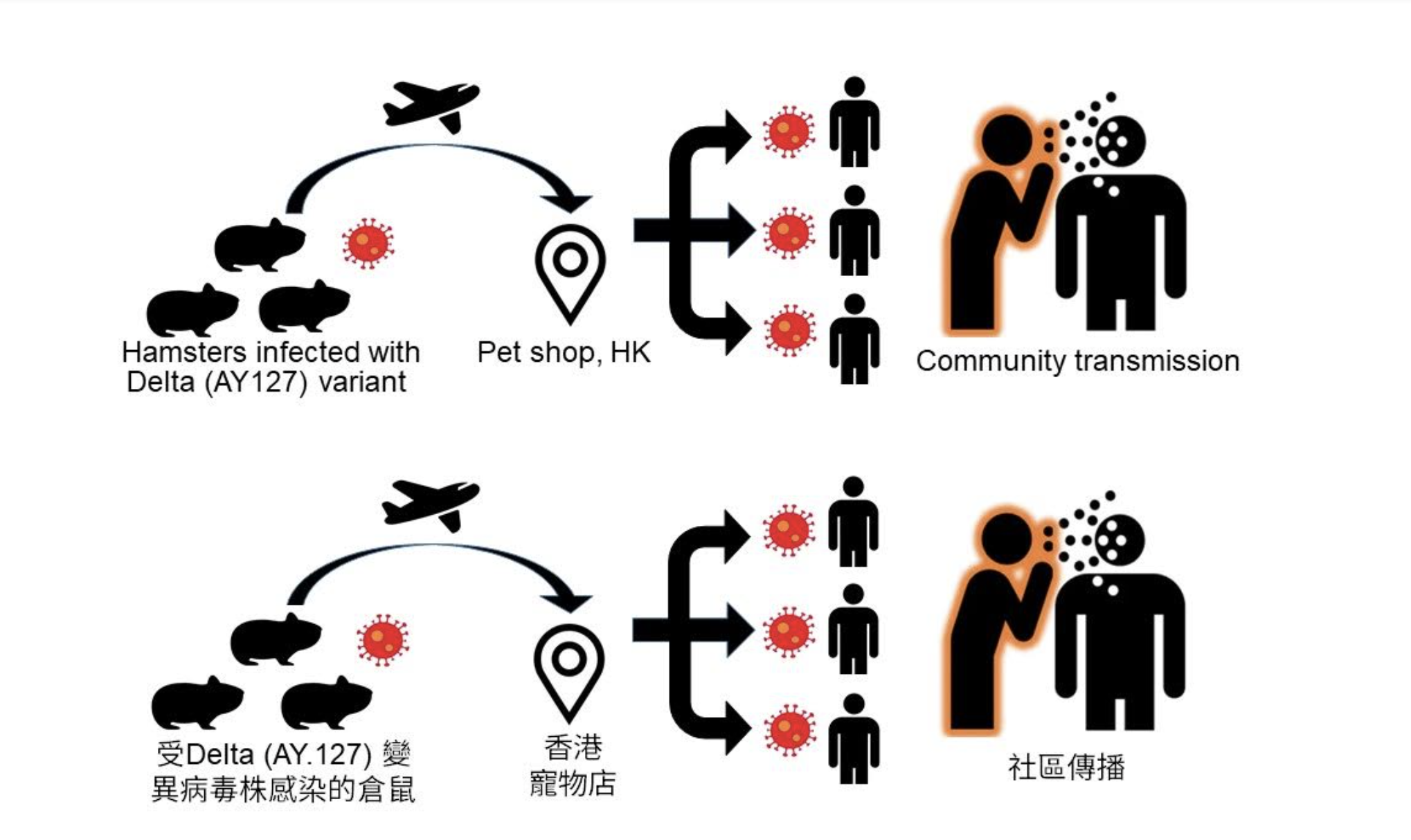 是項研究發現,Delta新冠病毒變異株(AY.127)在2022年1月時隨進口的寵物敘利亞倉鼠引入本港社區。來自受影響的寵物商店和倉庫樣本中,超過五成的寵物敘利亞倉鼠被新冠病毒感染。研究人員從這些倉鼠中抽取樣本,進行病毒基因測序分析。結果顯示,這些倉鼠群可能在事發前大約3個月被Delta新冠病毒變異株感染,並在香港不止一次從倉鼠傳到人類身上,再由其中一些受感染患者傳播給其他人,導致Delta新冠病毒變異株在本港市民之間傳播。