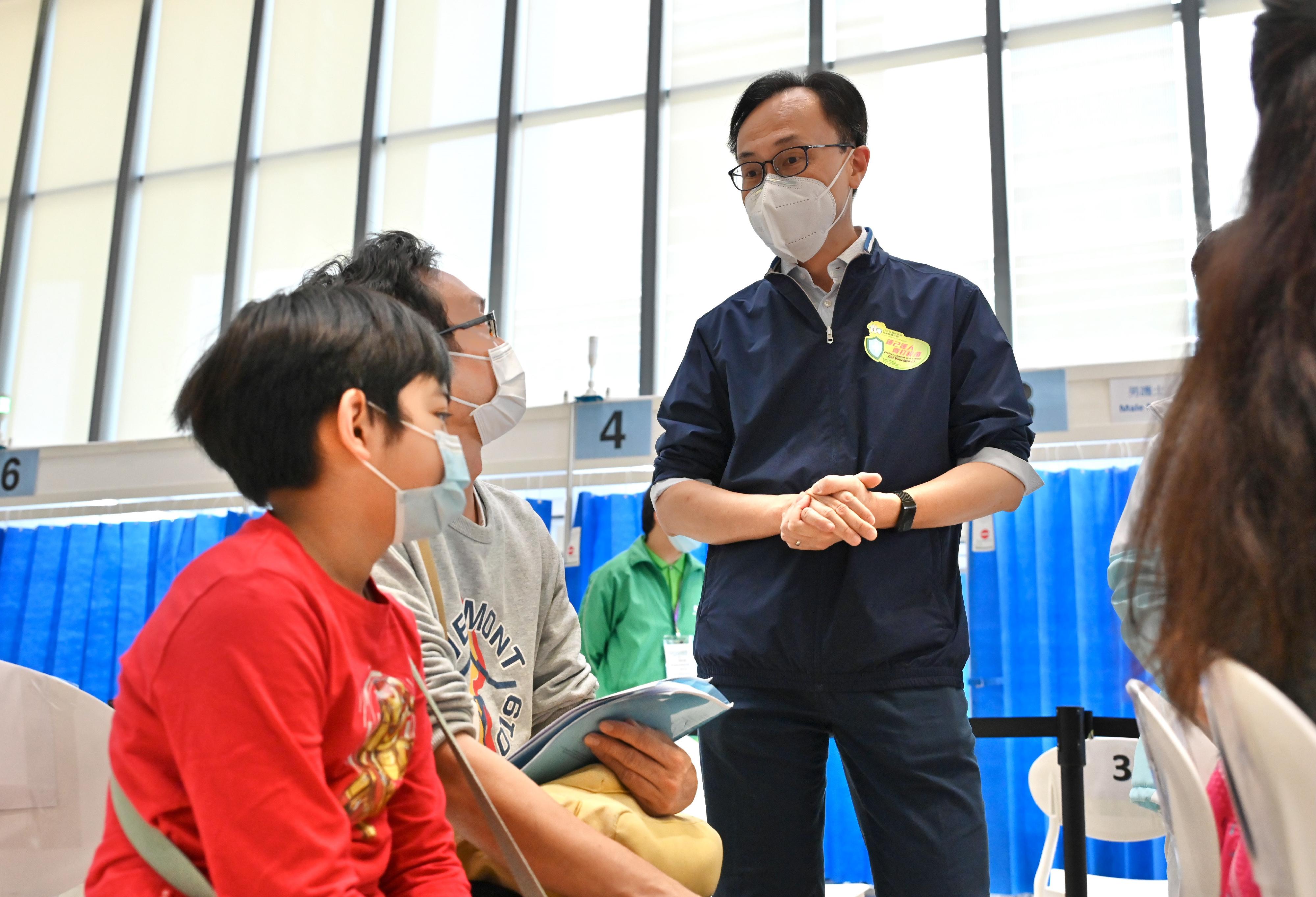 大公文匯全媒體報道,港鐵青衣站社區疫苗接種中心昨日(11日)啟用,為3歲以上的市民提供科興疫苗接種服務。公務員事務局局長聶德權今日(12日)到場視察,並參觀為5歲至11歲兒童提供復必泰疫苗的九龍灣香港兒童醫院兒童社區疫苗接種中心。