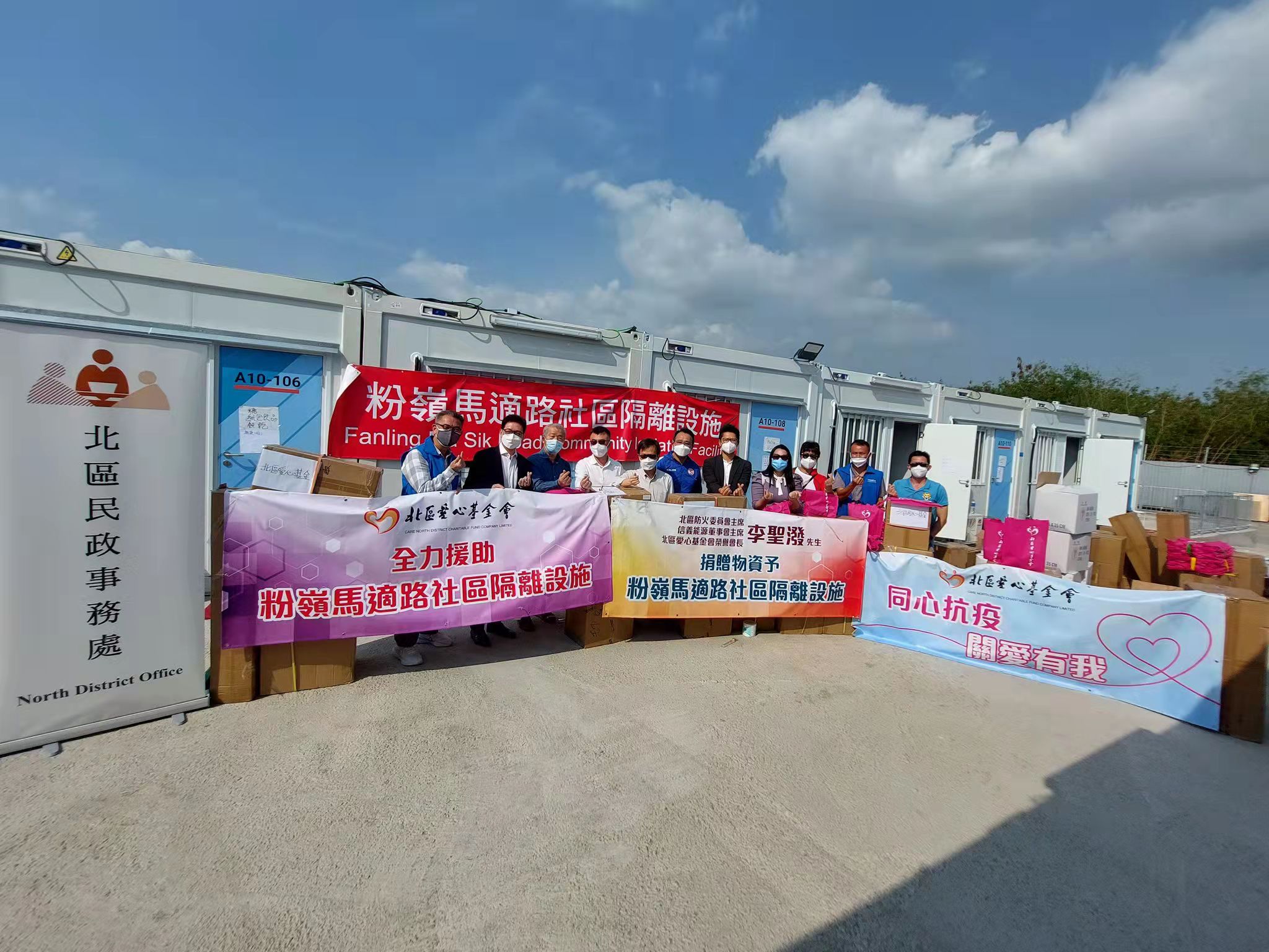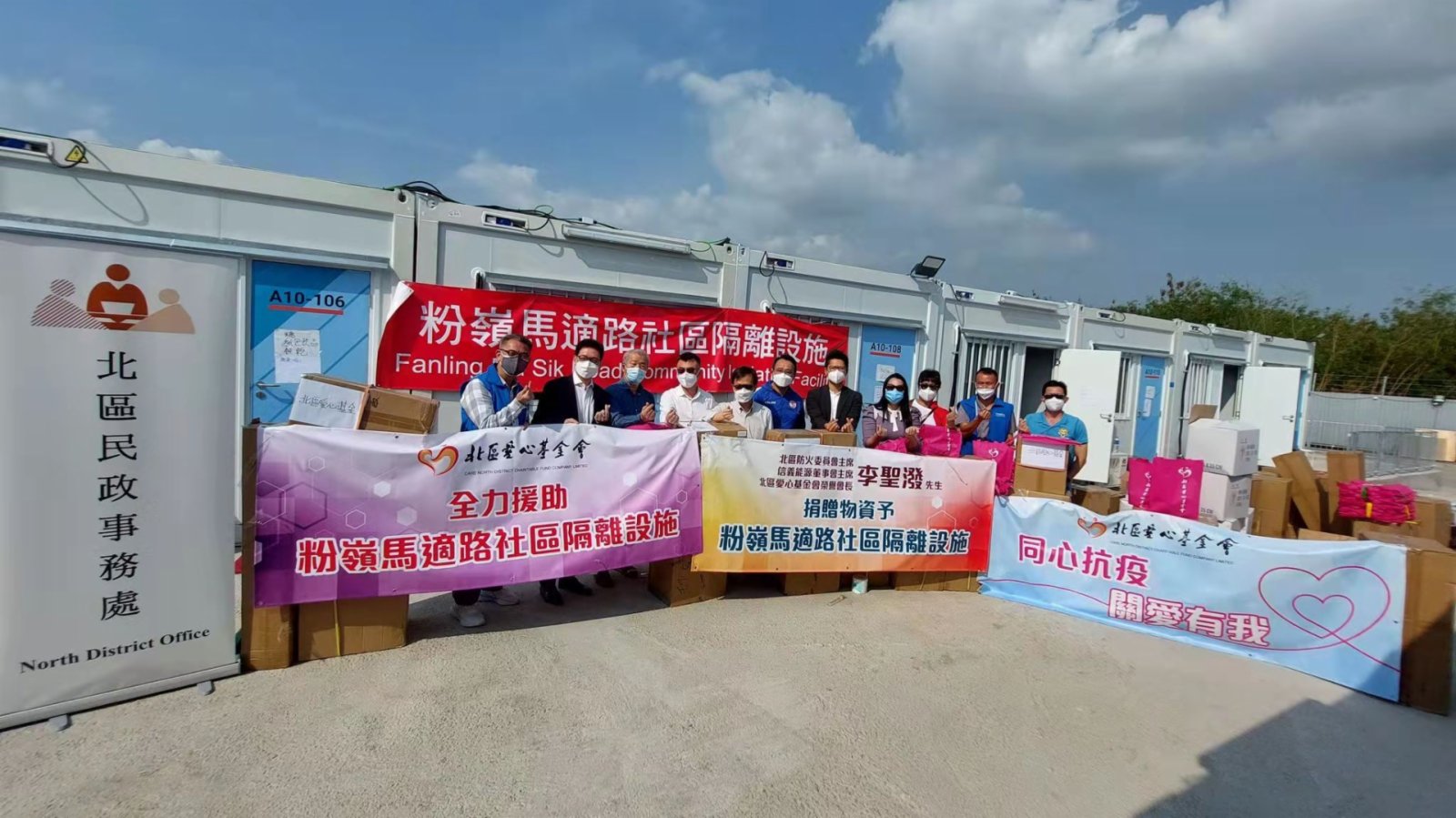 (大公文匯全媒體記者 子京)由中央援建的粉嶺馬適路社區隔離設施已於3月13日交付特區政府使用,在北區民政事務專員莊永桓的帶領下,北區愛心基金會榮譽會長、北區防火委員會主席和信義能源董事會主席李聖潑捐款北區愛心基金會購買30萬元物資,並於今日(14日)贈送予馬適路隔離設施內的隔離人士。