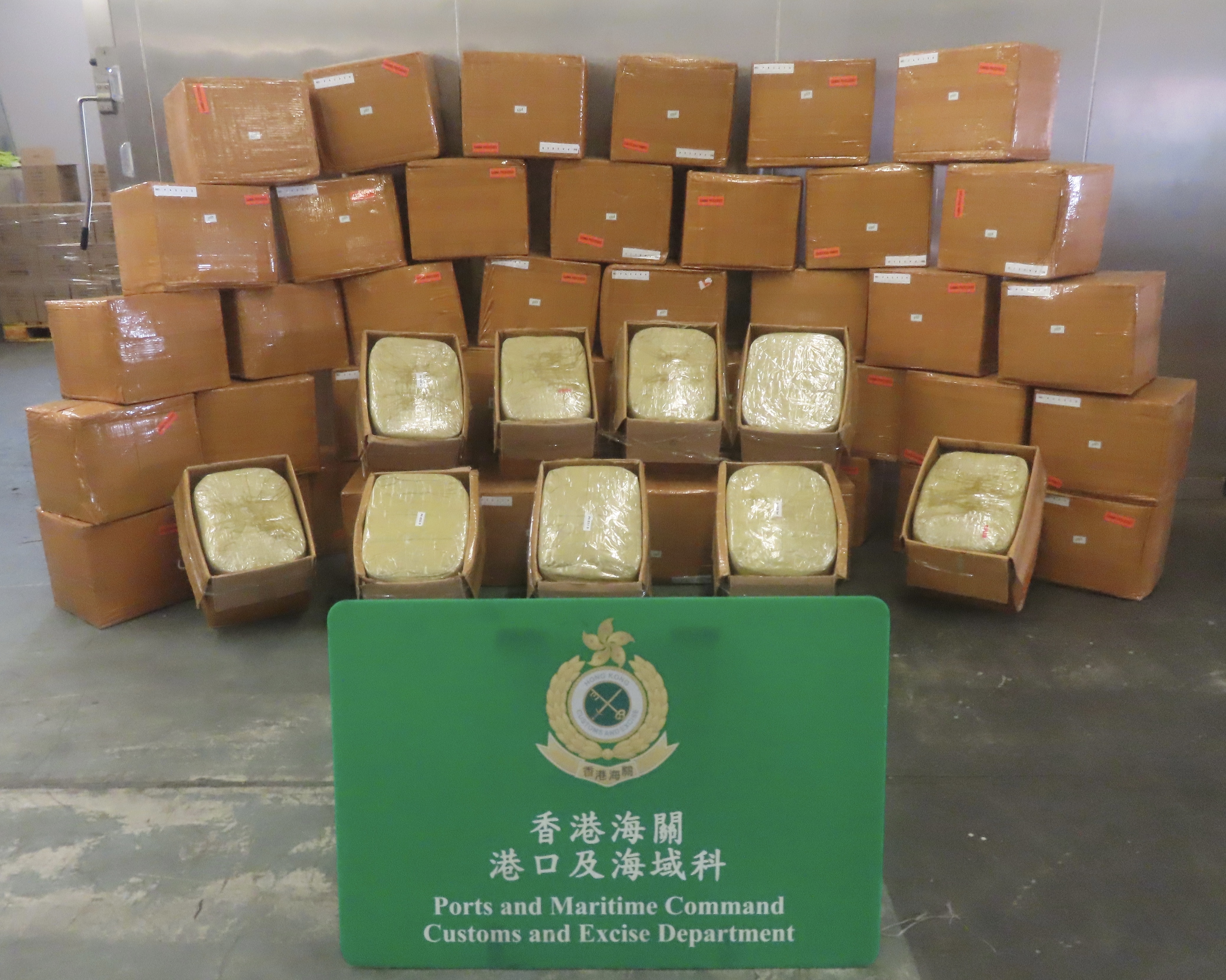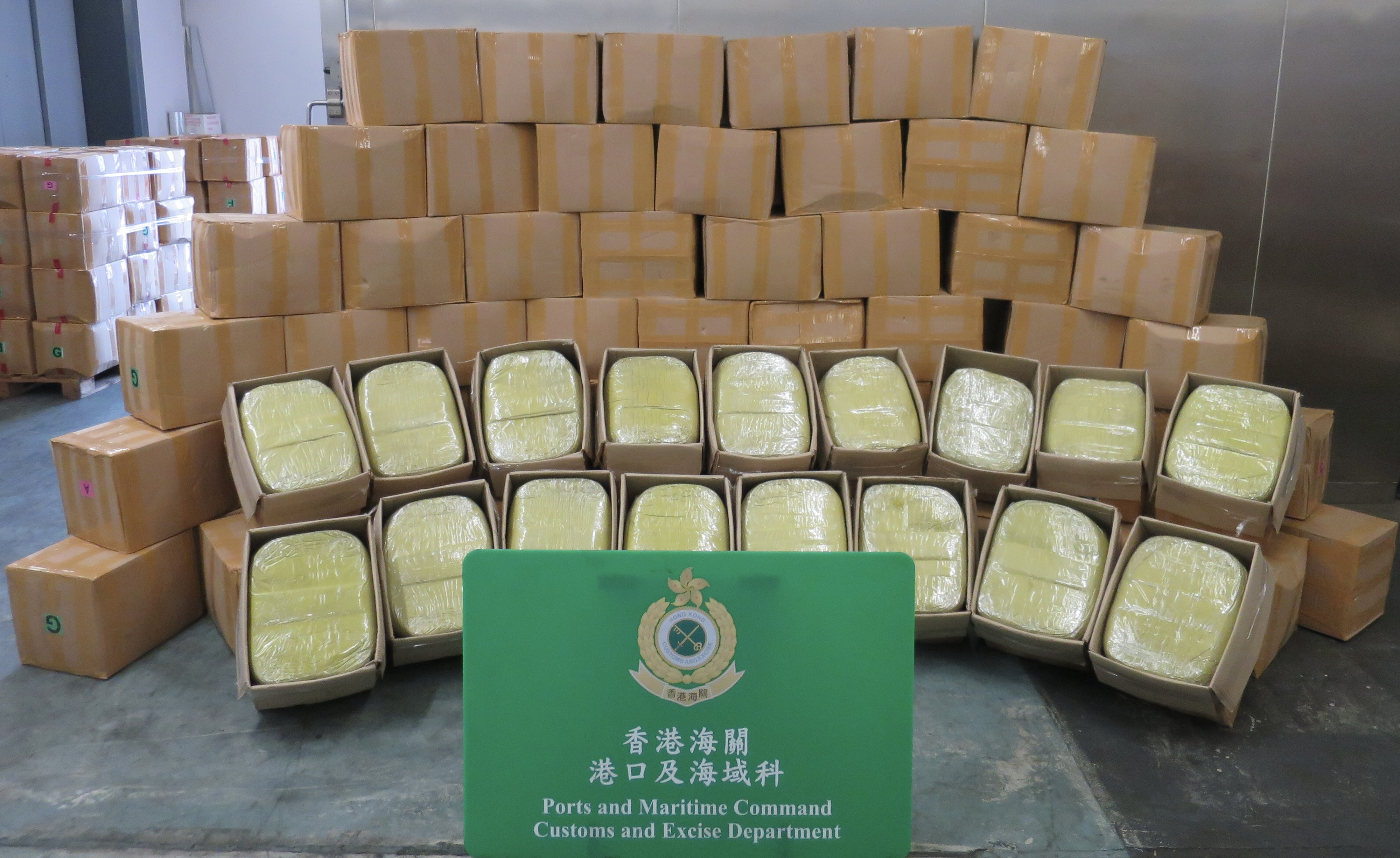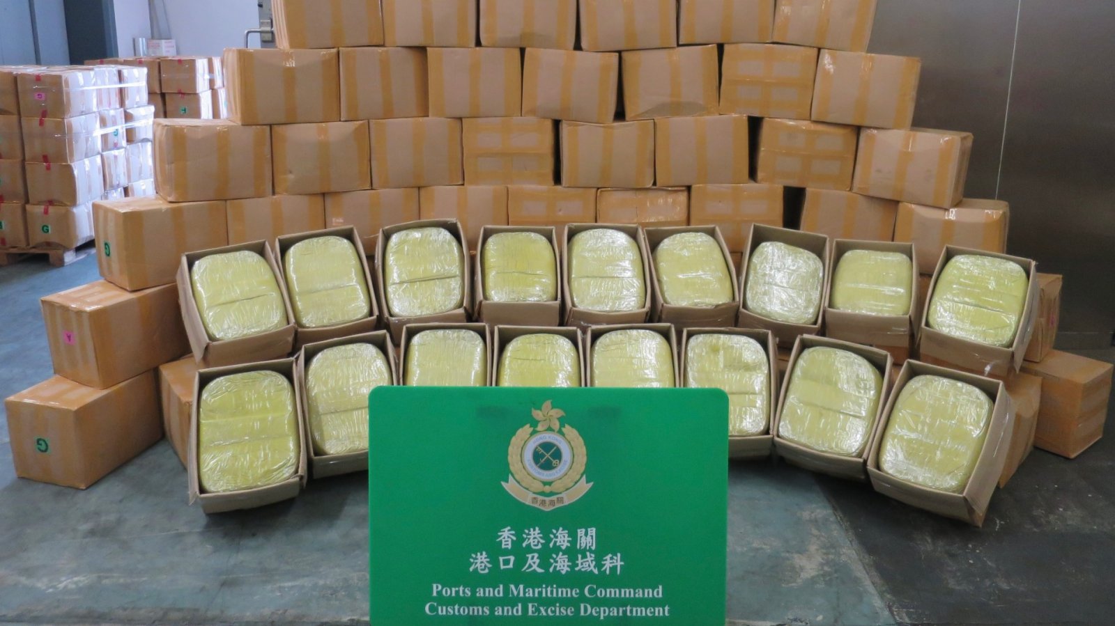 大公文匯全媒體報道,香港海關今日(15日)表示,在上周二和昨日在葵涌海關大樓驗貨場檢獲共約52公噸懷疑帽柱木鹼,估計市值約1.38億。