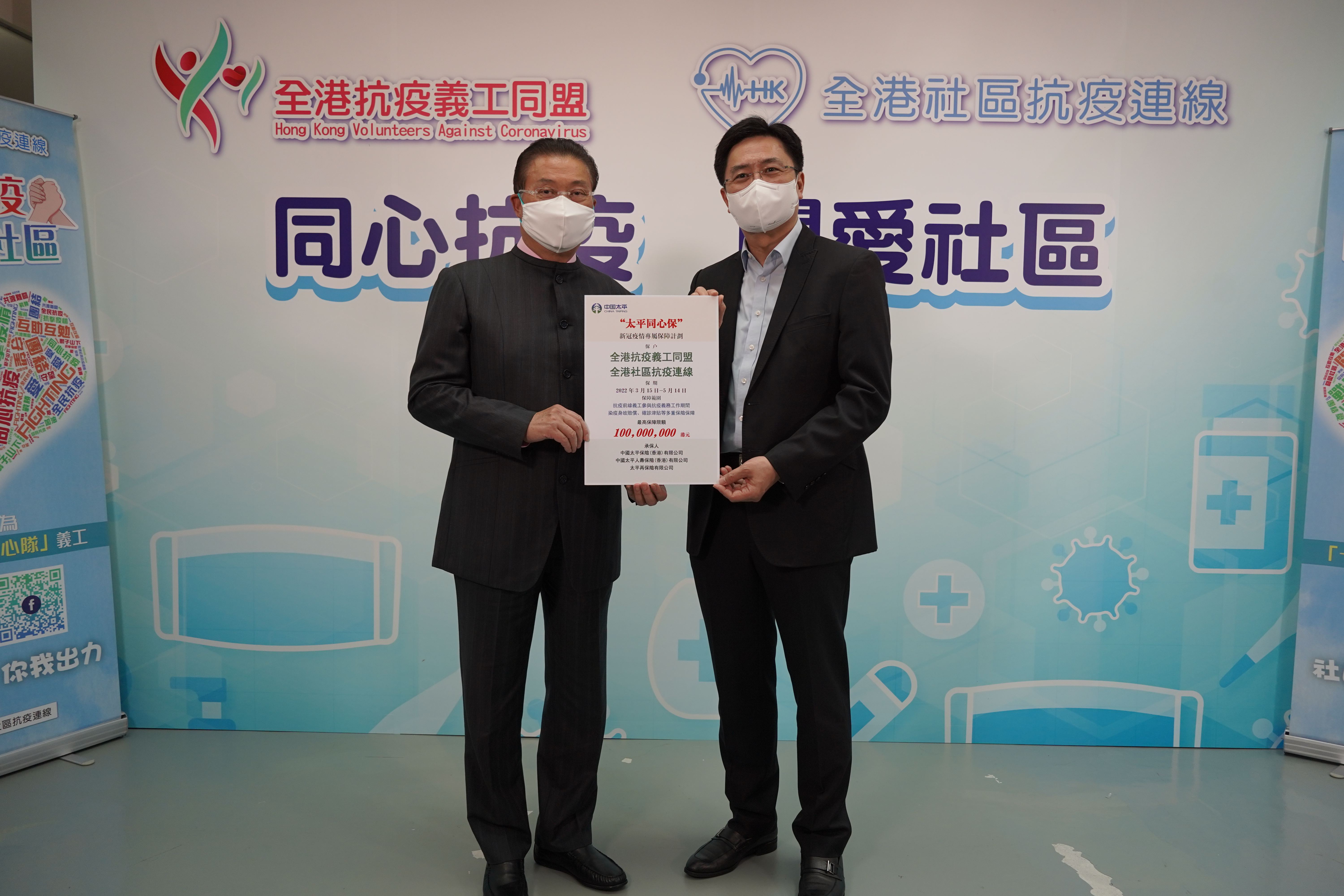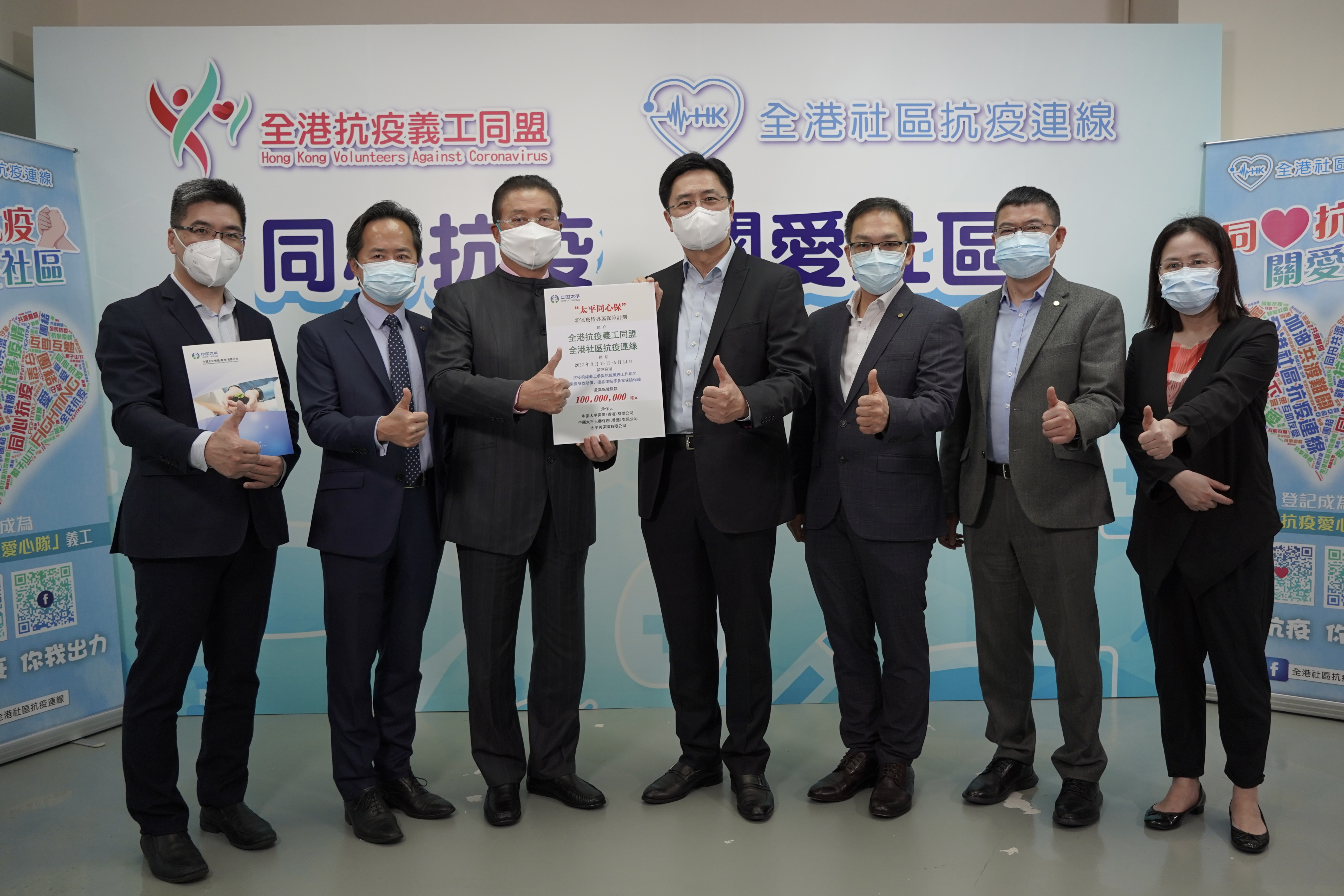 據統計,自第五波疫情爆發以來,中國太平累計捐贈抗疫物資和保費約百萬港元,包括向九龍社團聯會官塘地區委員會和博愛醫院捐贈快速檢測劑、醫用口罩、N95口罩、搓手液、防護服和面罩等抗疫物資逾12萬件。中國太平為各界抗疫義工免費提供1.36億元新冠染疫保險保障,除捐贈義工同盟的1億元保障外,還向香港的士司機從業員總會和菁英會捐贈保費為其發起「同心同行,一路有我」愛心車隊青年行動的200名義工司機、香港紀律部隊義工服務隊的200名前線義、由19名立法會議員發起的「感召義工齊護老」計劃的200名前線護老義工,分別免費提供最高責任限額1200萬港元的新冠染疫保險保障。
