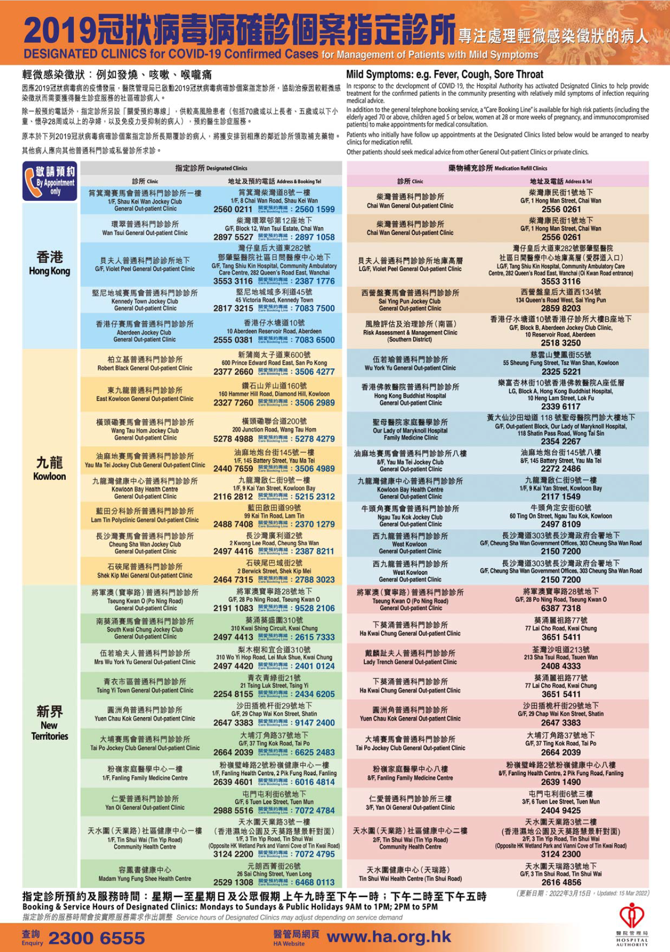 大公文匯全媒體報道,本港第五波疫情嚴峻,今日(17日)新增21650宗確診個案;第五波疫情至今,累計超過98萬人染疫。醫管局總行政經理(質素及標準)劉家獻今日在疫情記者會上表示,現時社區確診者可透過預約電話及關愛預約專線預約23間指定診所,由明天(18日)上午7時開始,除了電話預約以外,市民可透過手機應用程序「HA Go」的預約指定診所功能,預約23間指定診所。