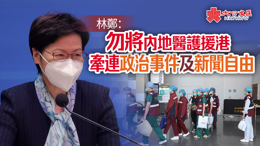林鄭指出,不明白為什麼要搞出這麼多事,去區分內地醫護和香港醫護。記者可以問問題,來獲取資料;但不該將內地醫護援港事宜,牽連政治事件及新聞自由。