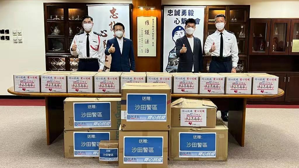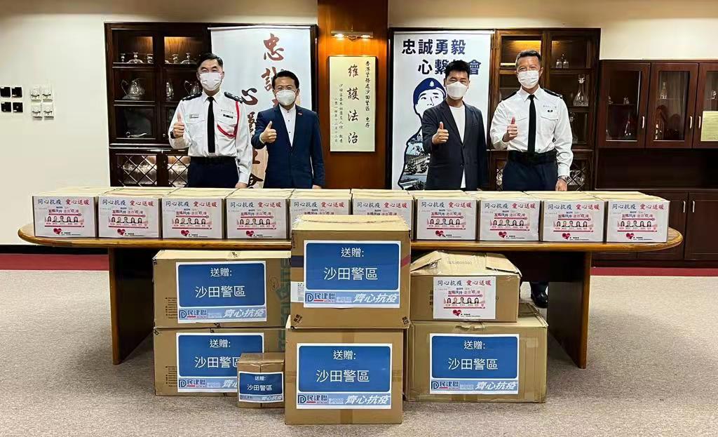 大公文匯全媒體報道,民建聯沙田支部昨日(19日)向沙田警區贈送抗疫物資,慰問前線警員,並為警隊打氣。民建聯立法會議員陳勇、葛珮帆、李世榮和郭玲麗以及民建聯沙田支部主席祝慶台,將一批快速檢測劑、口罩、保護衣、面罩及消毒搓手液等抗疫物資送到沙田警區馬鞍山警署,向警方送上慰問。沙田警區指揮官梁子健以及署理副指揮官陳國輝、田心分區指揮官許震豪、馬鞍山分區指揮官陳國豪、沙田警區行動主任葉思朗、警民關係主任張偉恆總督察及一眾警員代表出席接收。