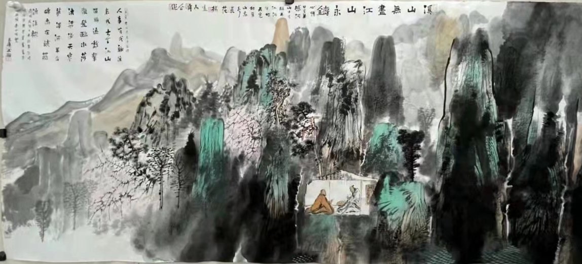 近日,由兩位著名國畫大家范揚先生、盧禹舜先生聯手創作的國畫精品《溪山無盡江山永鑄》問世。