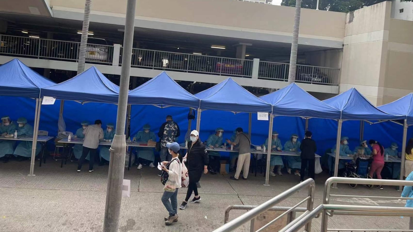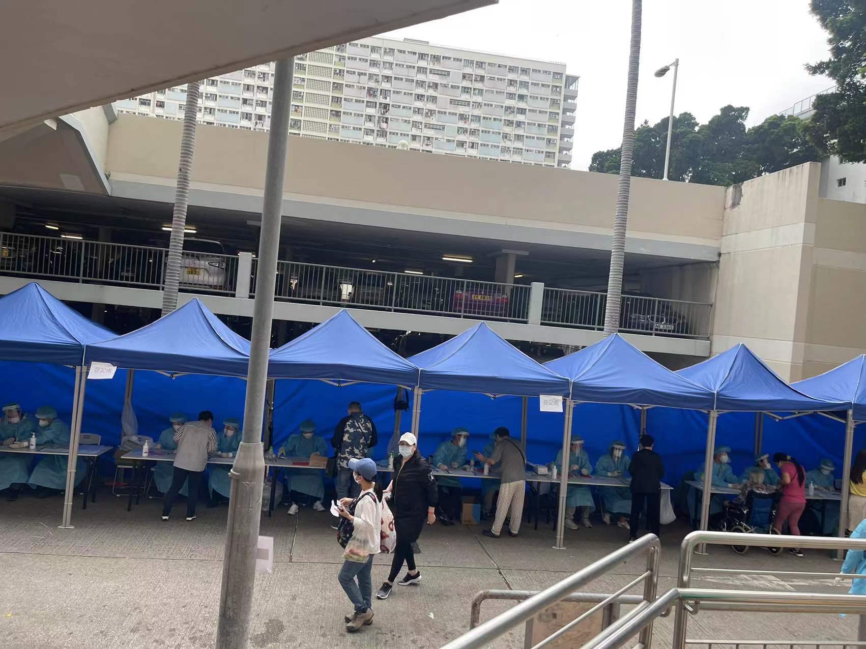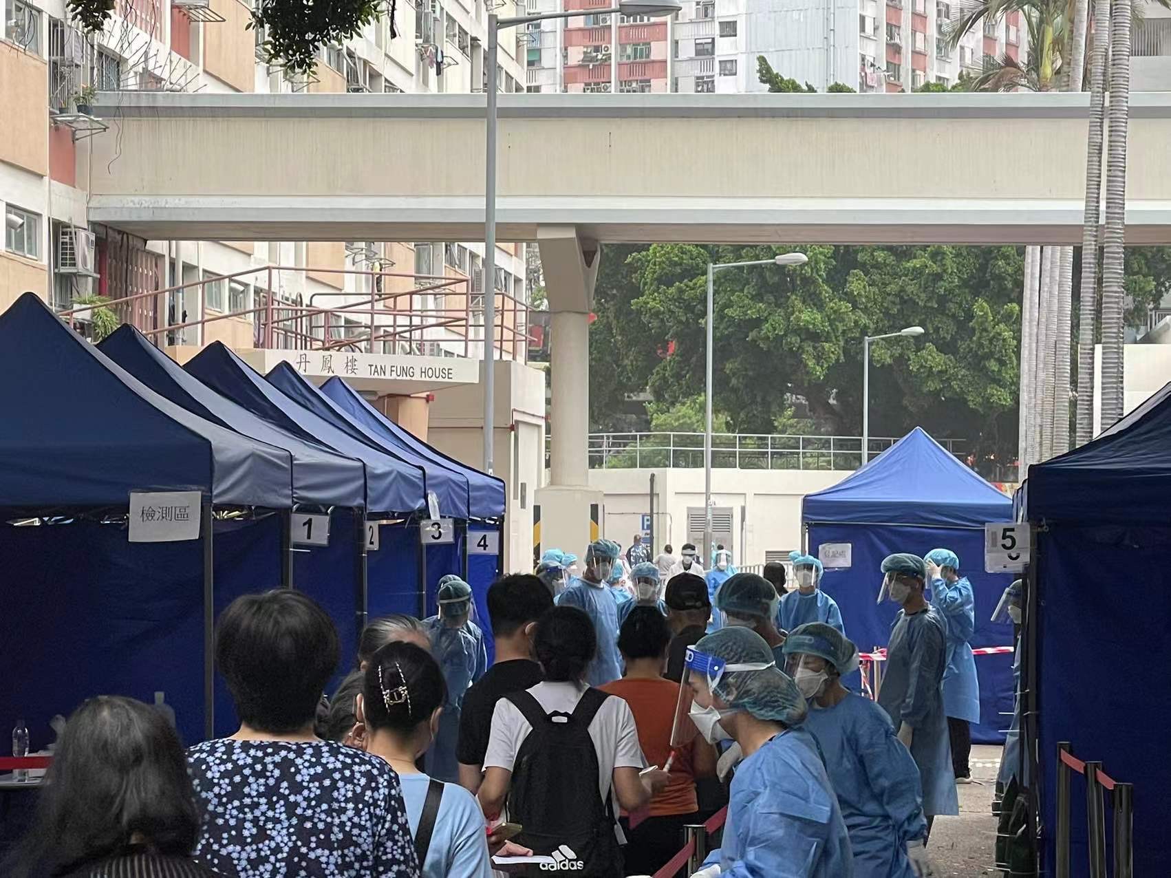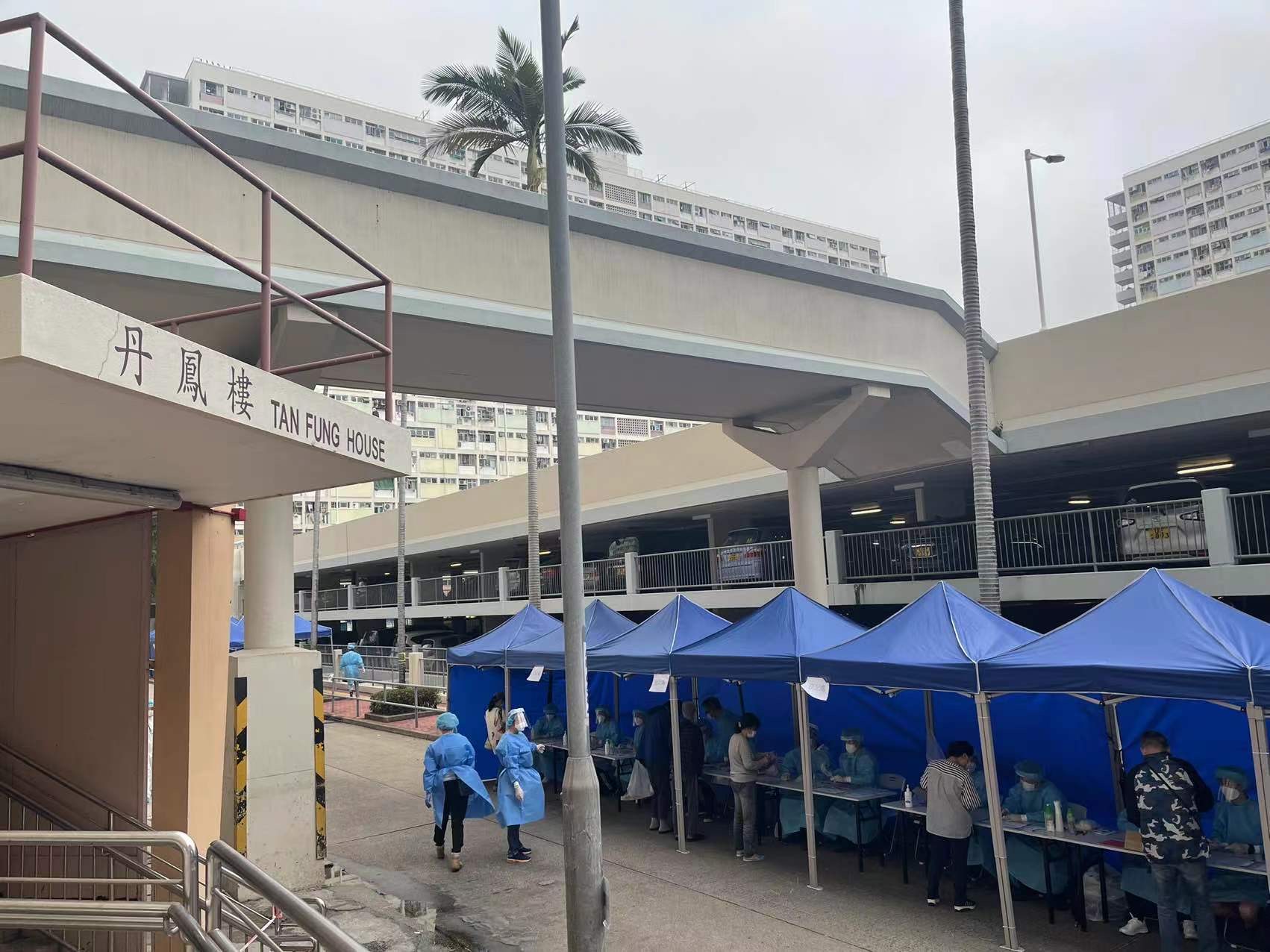 大公文匯全媒體報道,本港第五波疫情嚴峻,多幢大廈因為污水樣本呈陽性先後被圍封強檢。黃大仙彩虹邨丹鳳樓今日(22日)自下午4時起圍封,受檢人士需於晚上9時前接受檢測。現場所見,政府已經於受限區域內設立臨時採樣站,居民陸續落樓,排隊登記進行檢測,整體秩序井然。