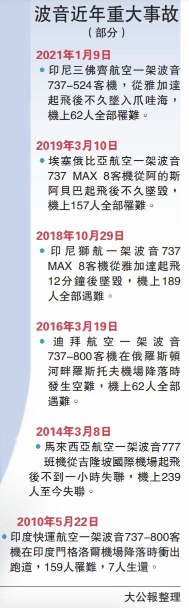 大公報綜合《紐約時報》、彭博社、CNN報道:中國東方航空公司一架波音737-800客機21日在廣西梧州市墜毀,美國飛機製造巨頭波音公司再次成為全球關注焦點。多間外媒認為,此次事故是波音面臨的最新危機,令外界更加質疑波音客機的安全性。也有評論認為,波音長期存在的一些問題再被推到台前。諸如波音隱患多多,但美國聯邦航空管理局(FAA)疏於監管,而波音企業本身為了利益最大化不惜讓員工撒謊等。