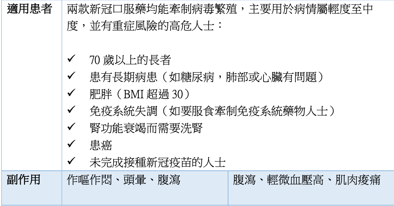- 按臨床指引及病人情況為公立醫院住院病人及指定診所的合適新冠病人處方合適的新冠口服藥物
