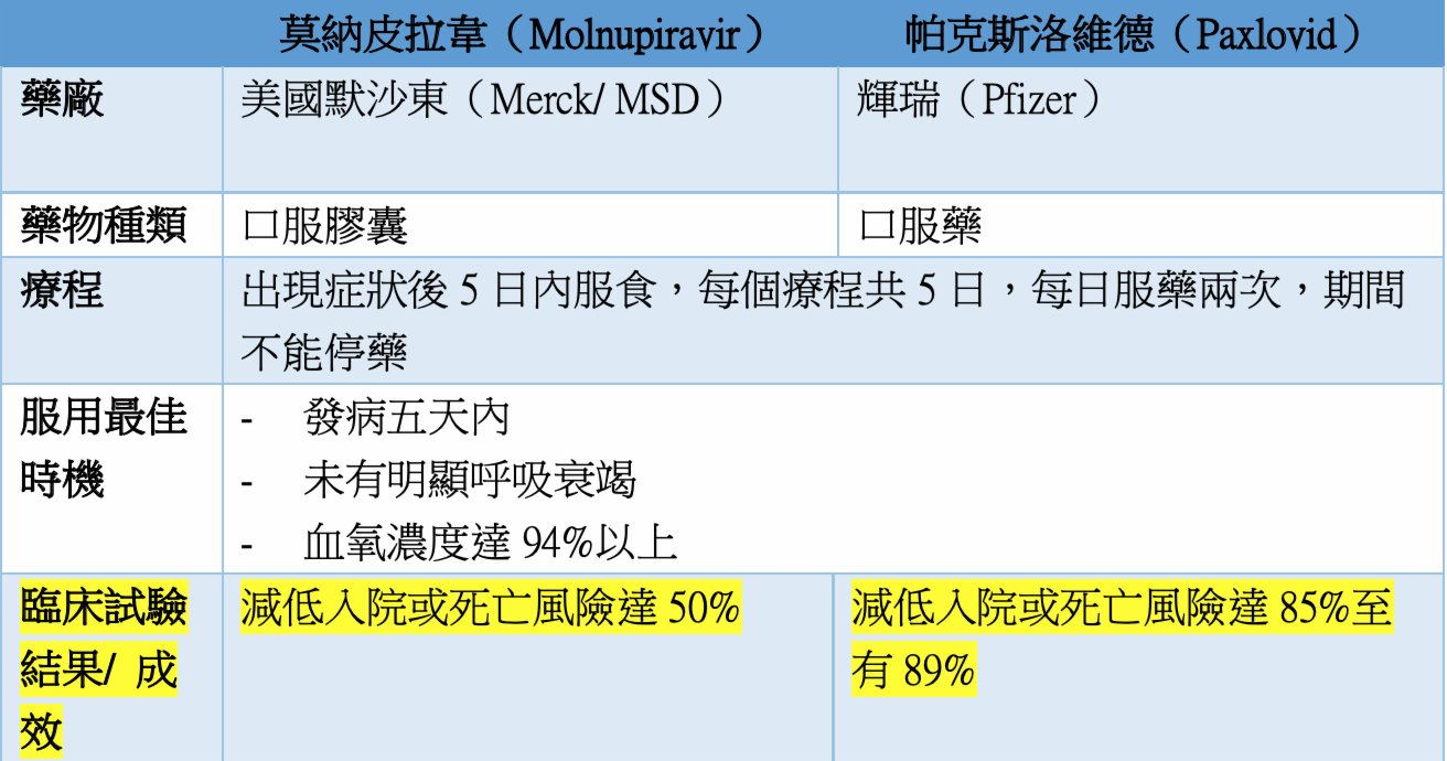 為對抗第五波疫情,醫管局已引入兩款治療新型冠狀病毒的口服藥,分別為默沙東研發的莫納皮拉韋(Molnupiravir)及輝瑞研發的帕克斯洛維德(Paxlovid)。究竟兩款口服藥有何分別?哪類人士適用?又與哪些藥物「相沖」?市民又可從甚麼途徑獲處方這些口服藥?