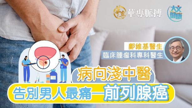 前列腺癌在本港十大常見男性癌症中位踞第三。不少男性以為小便困難是年紀大的正常退化現象,加上羞於啟齒,往往延醫診治,錯過了最佳的治療時機。儘管排尿不暢順並不一定是患上前列腺癌,而且大多數都是源於良性前列腺增生症(BPH),但男士們也切勿掉以輕心,應及早找醫生檢查清楚方為穩妥。如有前列腺癌家族史,尤其是父親或兄弟在年輕時確診前列腺癌的高危一族,應更具警覺性。至於基因變異(BRCA)雖然並不常見於前列腺癌,惟帶有BRCA基因變異的男性,患上前列腺癌的機率會較高。值得注意的是,骨轉移是前列腺癌常見的情況,癌細胞通常經淋巴系統轉移至骨骼,因此骨痛是擴散性前列腺癌的病徵之一,年長男士別把骨痛當成是年紀大「正常」的風濕骨痛啊!