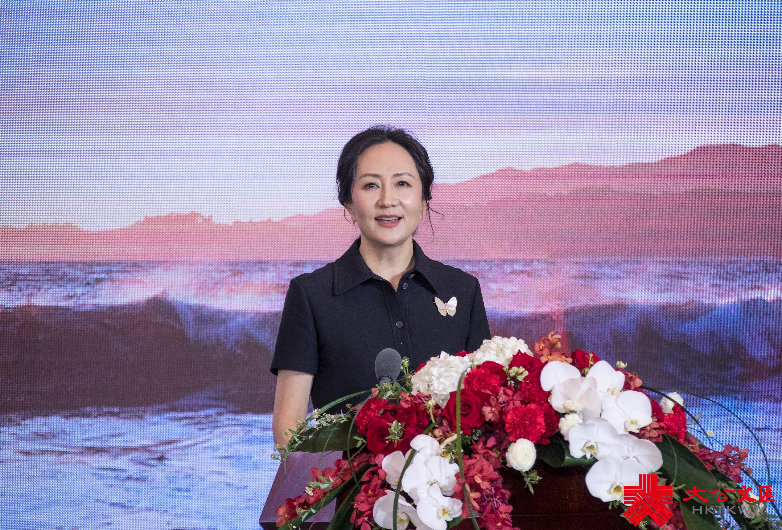 (大公文匯網 記者 毛麗娟)一襲黑色的職業連衣裙,腳踩黑色高跟鞋,手腕上戴着三葉草的幸運手鏈,胸前別着一枚寓意「破繭成蝶」的蝴蝶胸針,面容溫和而堅定……2022年3月28日,時隔三年,孟晚舟再次以華為副董事長、CFO身份公開亮相,對華為2021年年度財務數據做一手「解剖」,並接受全球媒體提問。這也是孟晚舟經歷2018年風波之後,首次在公司正式對外場合露面。