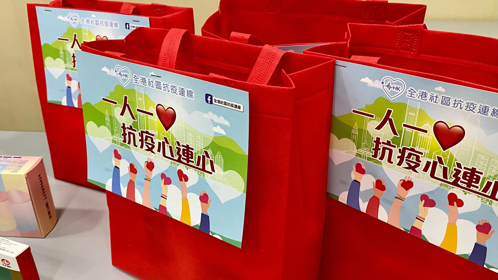 每份愛心禮物包內包括N95口罩、健康電子手環及港版連花清瘟膠囊。「全港社區抗疫連線」表示,本着你心即我心的精神,與醫護站於抗疫同一戰線,日後將會繼續募集物資及服務,為醫護人員打氣。