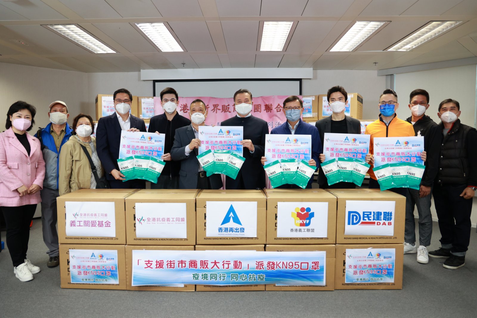 大公文匯網報道,全港抗疫義工同盟、香港再出發大聯盟、香港義工聯盟、全港抗疫義工同盟義工關愛基金和民建聯聯合舉辦的「支援街市商販大行動」今日(29日)在港九新界販商聯會的協助下,為全港街巿商販派發23萬個KN95口罩,向疫情期間一直在街市堅守在一線的服務業人員,送上關懷。