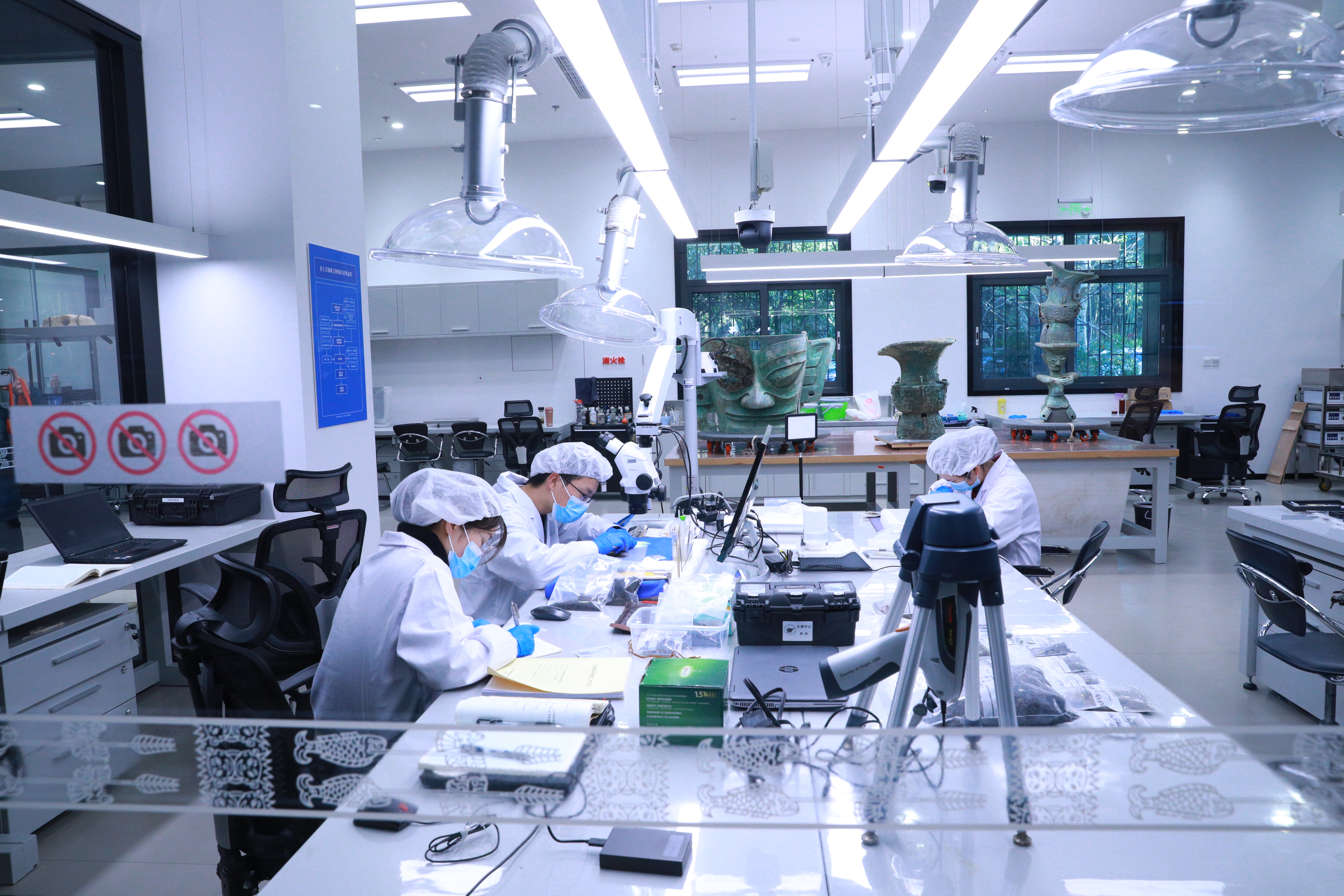 唐飛稱,四川省文物考古研究院已編製了第一期文物修復保護方案,擬對最新出土的1696件文物進行保護修復,其中包括青銅器、金器、玉石陶器、象牙及象牙雕刻等。在修復的同時,還將對文物展開表面殘留物信息提取、器物病害狀況、病害成因、器物成分、組織結構、製作與加工工藝、礦料溯源等方向的多學科研究。尤其對象牙將開展本體材質、加固材料、加固工藝、加固效果、加固材料表徵等研究,爭取今年取得突破性進展,為明年或後年大批量開展象牙加固保護做好準備。