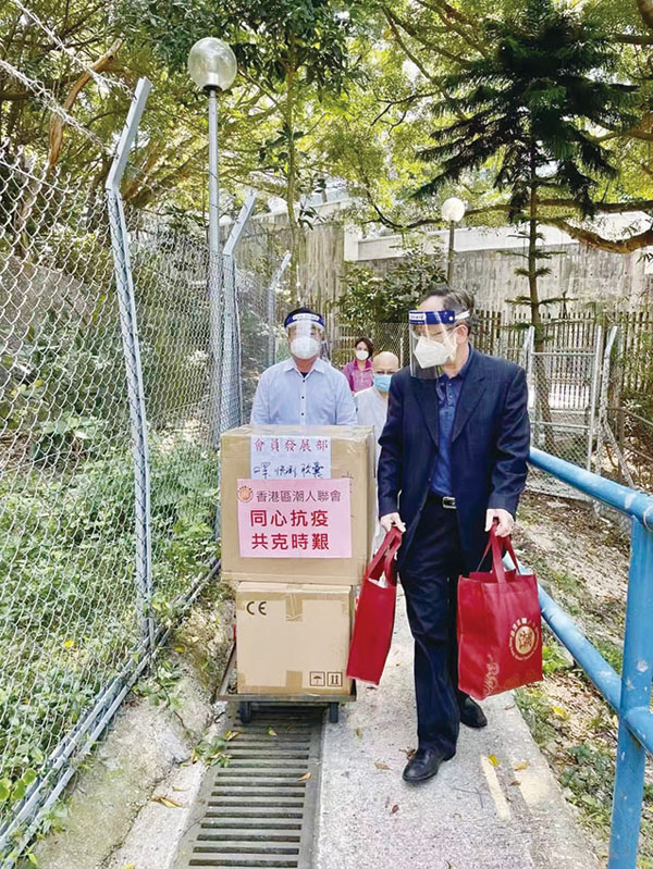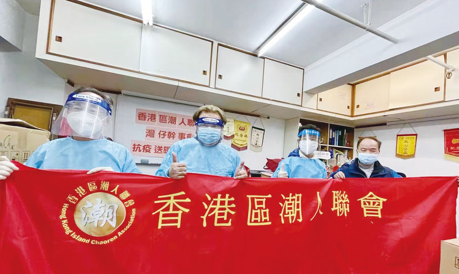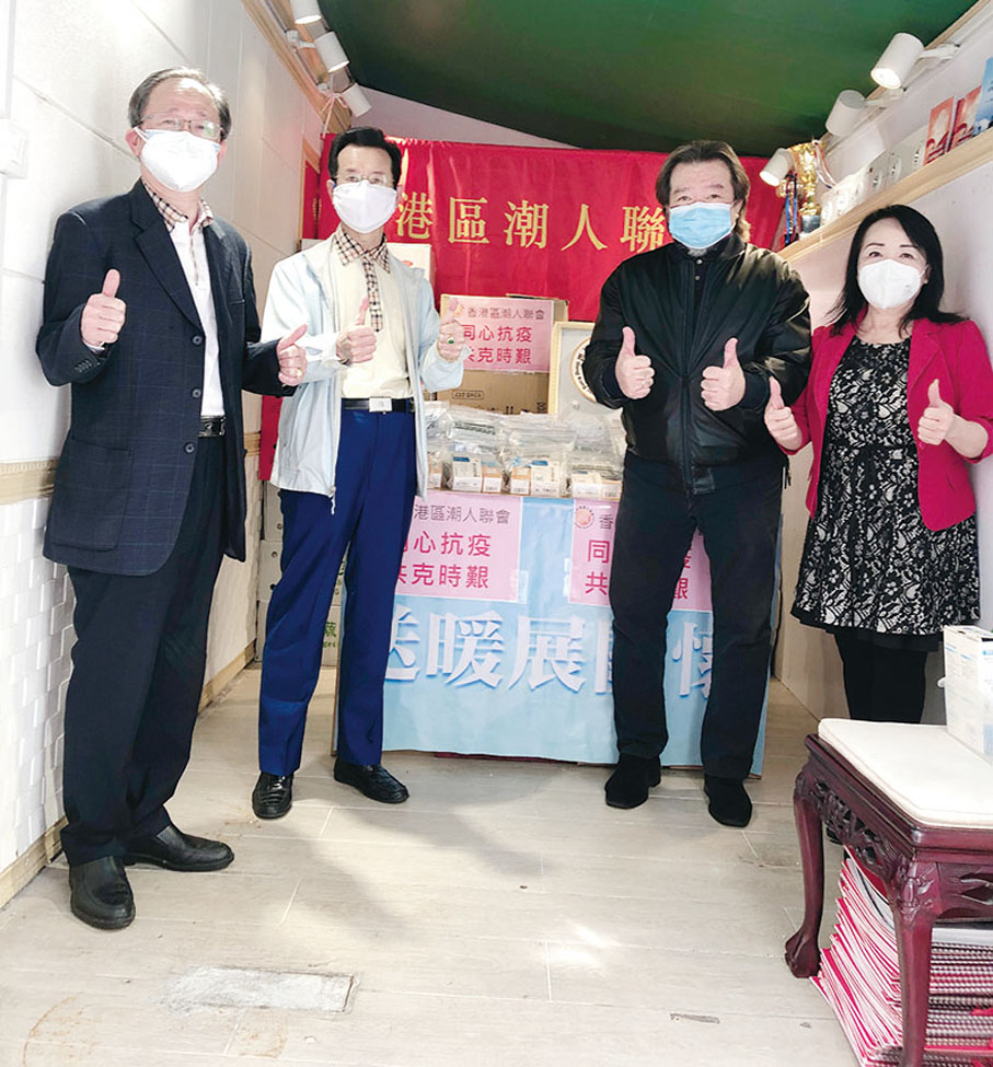 同時,香港區潮人聯會組織一支共96人的潮人抗疫義工隊,在疫情嚴峻的情況下,全力協助政府有關防疫抗疫工作。