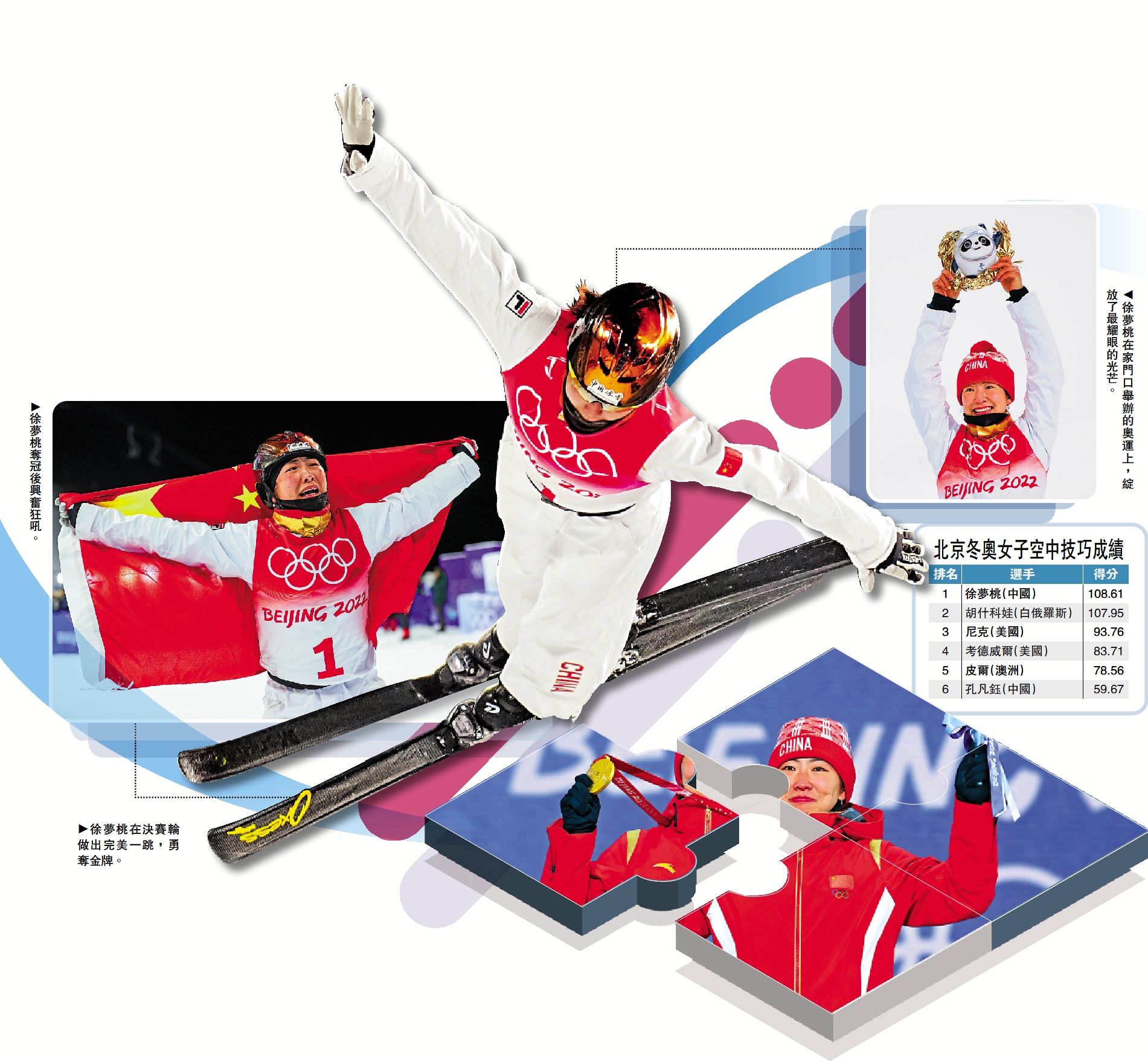 (大公報 記者 史玄之)在2月14日的北京冬奧會自由式滑雪女子空中技巧比賽中,中國奧運「四朝元老」徐夢桃以決賽輪的完美一跳,力壓白俄羅斯、美國等名將,勇奪金牌。這枚金牌,不僅創造了中國女子空中技巧隊在冬奧歷史上金牌「零的突破」,也為徐夢桃填補了大滿貫榮譽簿中的最後一塊拼圖。這位中國自由式滑雪界的當家花旦,在歷經20年的蹉跎磨礪後,終於在家門口舉辦的奧運上綻放了最耀眼的光芒。