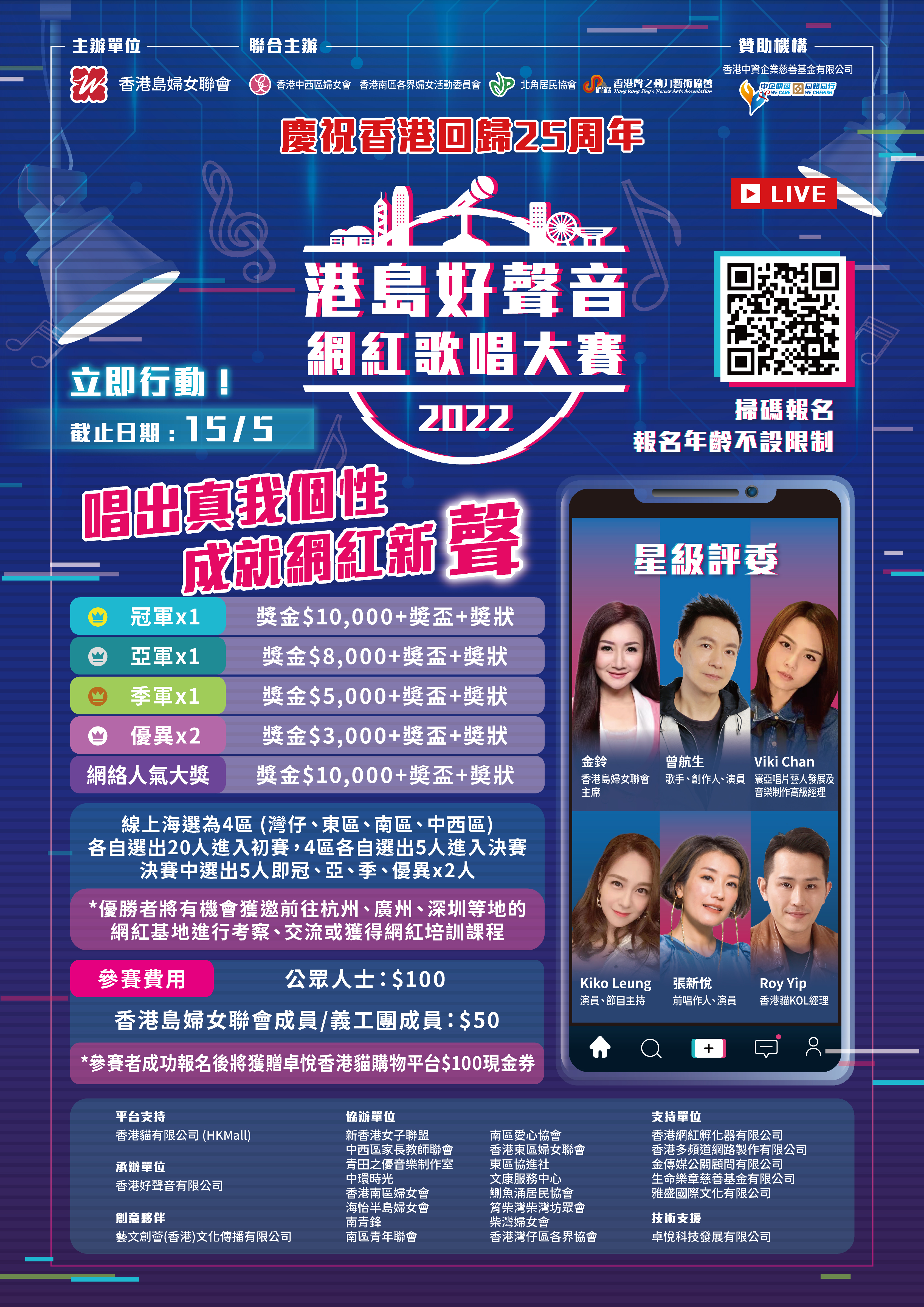 香港島婦女聯會秘書長胡玉貞介紹, 隨着近年新網絡媒體的快速發展,網紅文化亦隨之興起,衍生潛力巨大的網紅經濟,同時成為不可忽視的文化現象傳播平台。相信舉辦「港島好聲音網紅歌唱大賽」,可以發掘、訓練及提拔本地具潛力的新人網紅偶像,以香港作為舞台加強藝術文化交流,塑造本地網紅趨勢,順應潮流掀起網紅文化的浪潮。比賽別具新意,不分男女老幼,只要對自己的才華充滿信心,不同類型的人都可以成為網紅唱將。