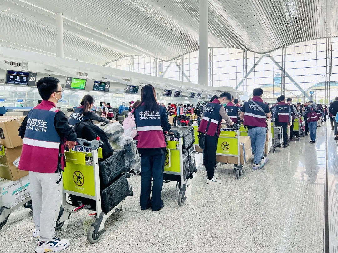 從檢測隊進入航站樓開始,白雲機場運行控制中心等相關單位全程配合跟進,實現全流程保障。南方航空設立專用超規行李櫃枱處理醫療隊行李,並划出專門區域實施保障。3日18時半,隊員們登上前往上海的航班。