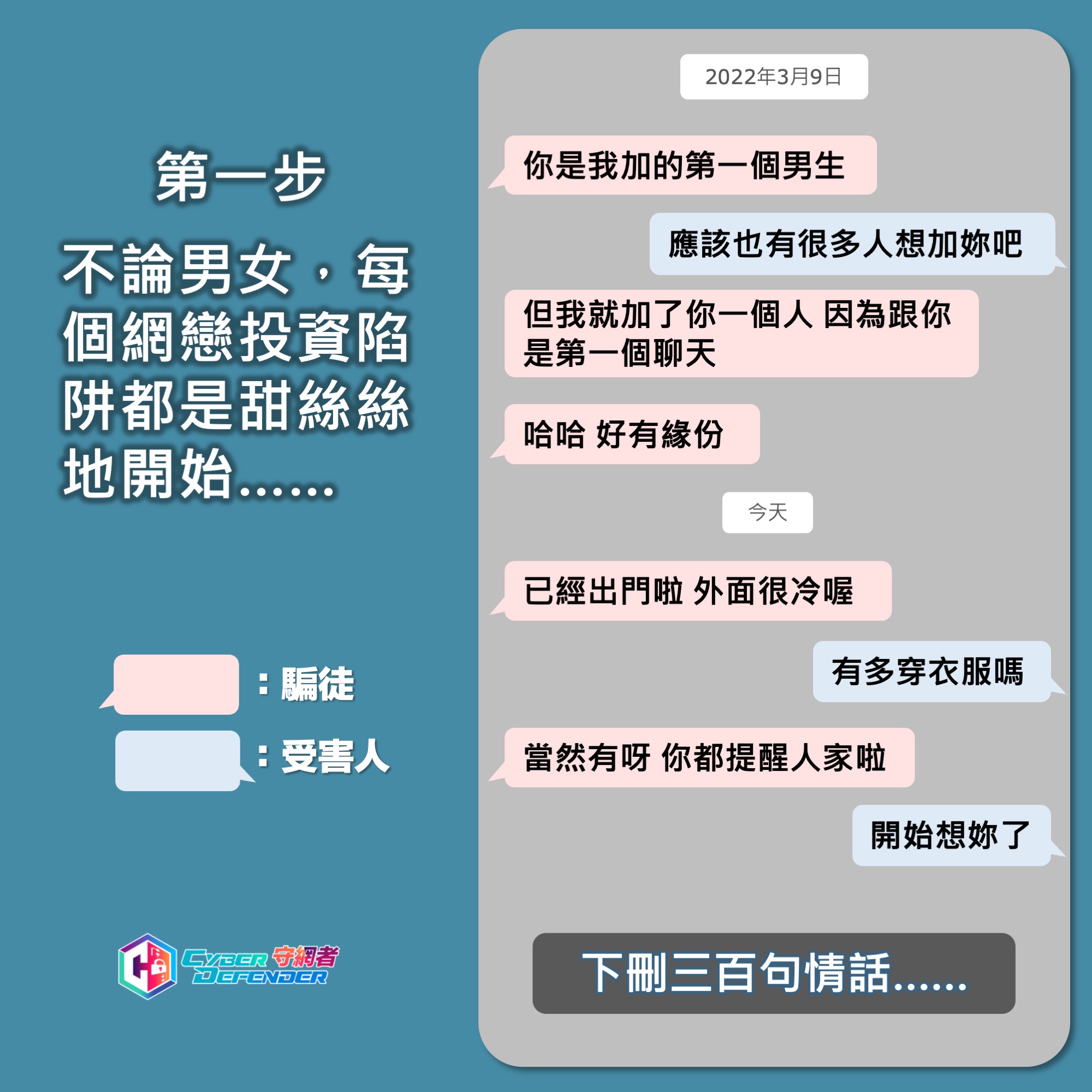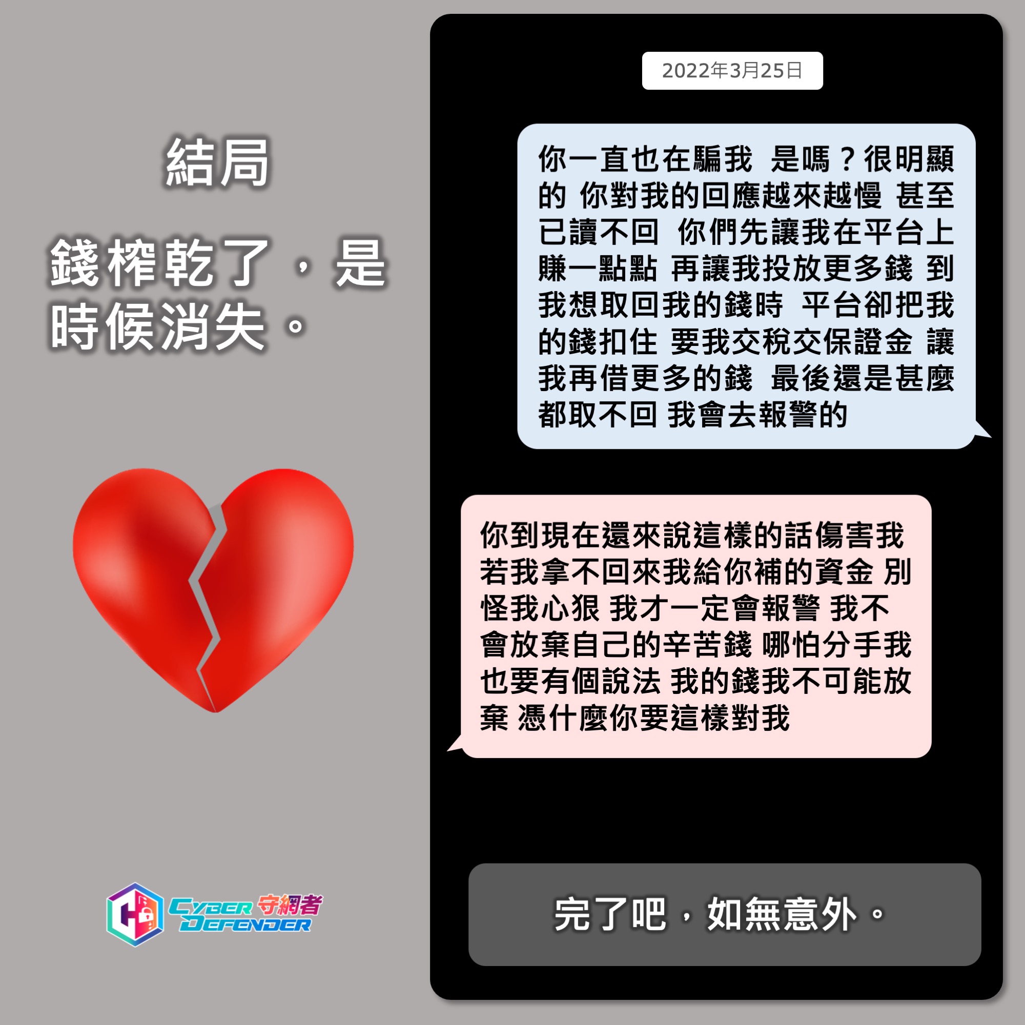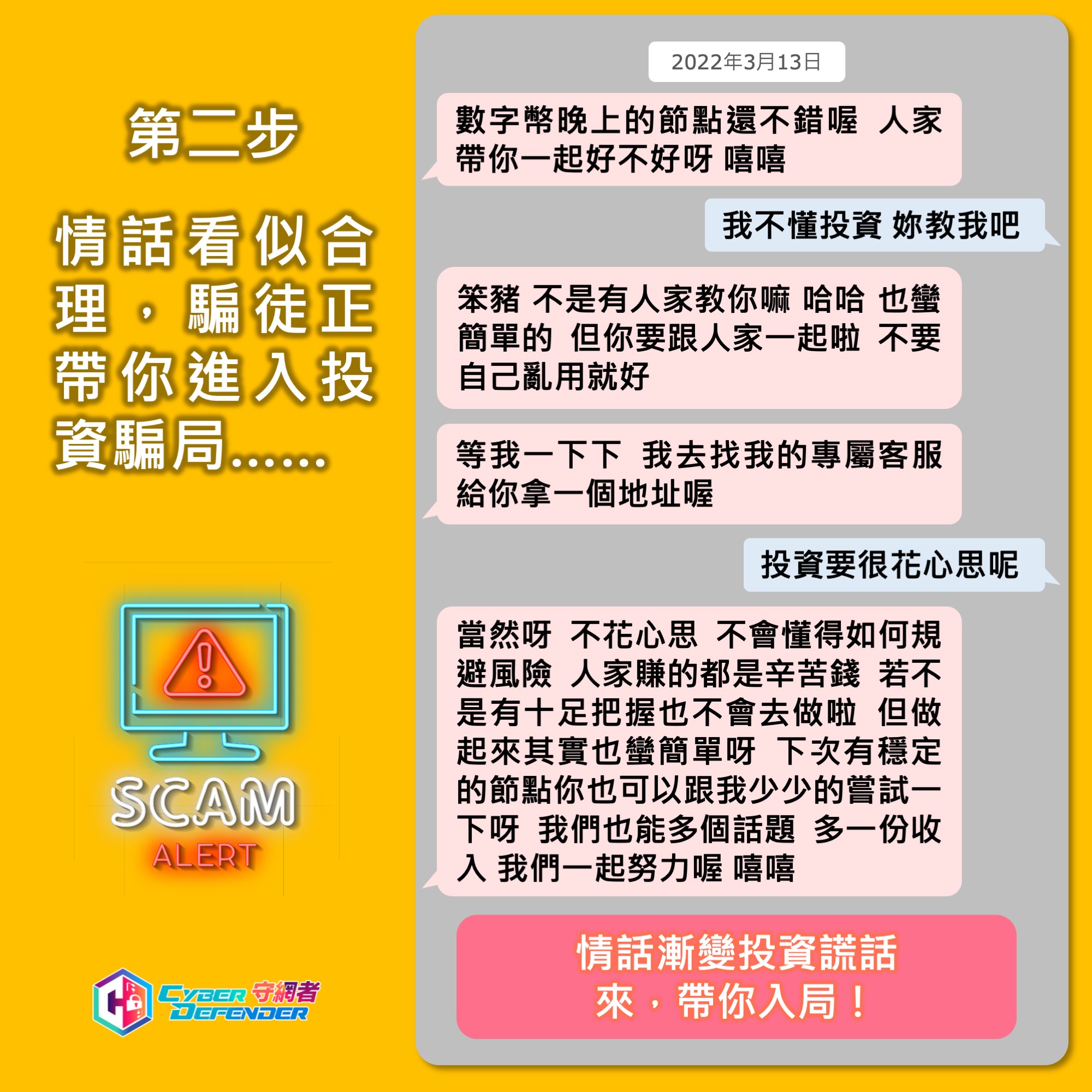 關鍵詞:警方網戀投資騙案對話節錄騙徒