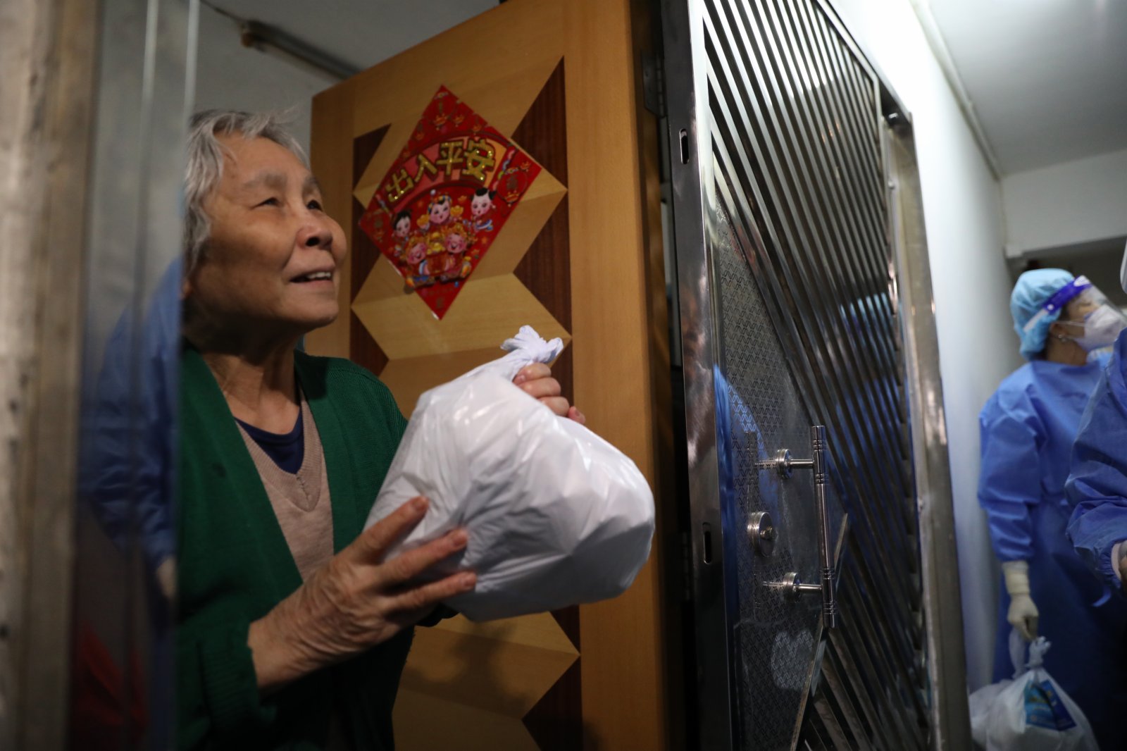「快速抗原測試包非常有用,因為自己買的話不知道哪個品牌合格,現在有政府發的就放心了。」住在旺角廣東道唐樓、年過七旬的李婆婆7日接受記者採訪時說:「防疫服務包派發首天就有義工將服務包送到家門口,他們真的很好心。」