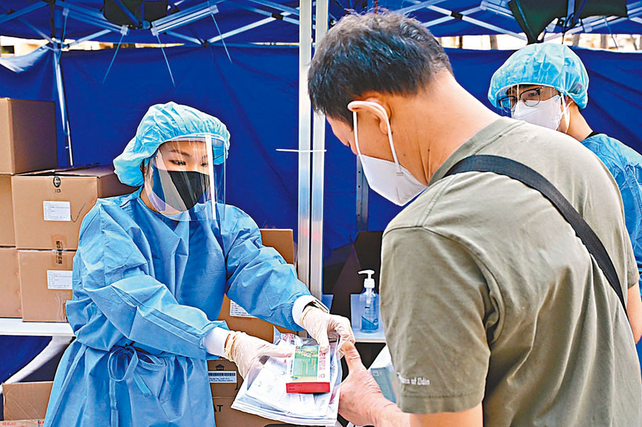 香港文匯報報道,特區政府向全港270萬個家庭派發「防疫服務包」,並鼓勵市民昨日(8日)起,連續三日進行快速抗原測試(快速檢測),並呈報陽性結果。食物及衞生局常任秘書長(衞生)陳松青近日接受大公文匯傳媒專訪時表示,初步評估認為,確診數字會因為全民快測增加,但整體數字仍維持四位數。政府相關部門已為計劃進行預演,確診者最快一日內可獲安排入住隔離設施,並獲派抗疫物資包等配套支援。