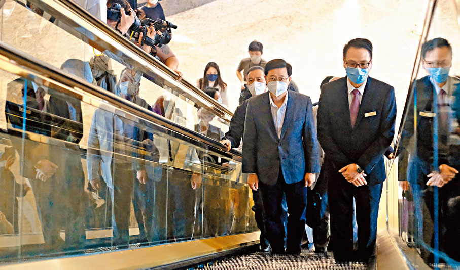 【香港文匯報記者 鄭治祖】新華社昨日報道,國務院依照《中華人民共和國香港特別行政區基本法》的有關規定,根據香港特別行政區行政長官林鄭月娥的建議,於前日(7日)決定免去李家超的香港特區政府政務司司長職務。李家超昨日在有關消息公布後會見記者,表示多謝香港、多謝香港市民在過去45年給他服務香港的機會,並會於今日舉行記者會,正式公布參選特首。他強調,將會秉承熱誠,「接着走我將會走的道路。」據報,李家超因應不同政策範疇,邀請了不同專家就政綱內容提供意見。有選委則透露,李家超競選辦已在徵求選委的提名。