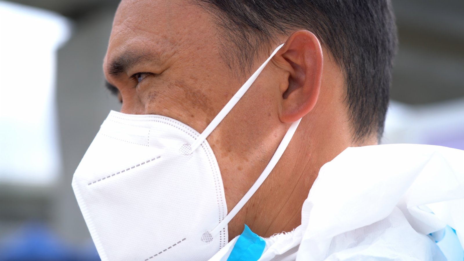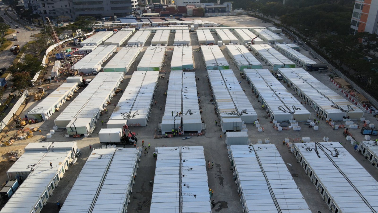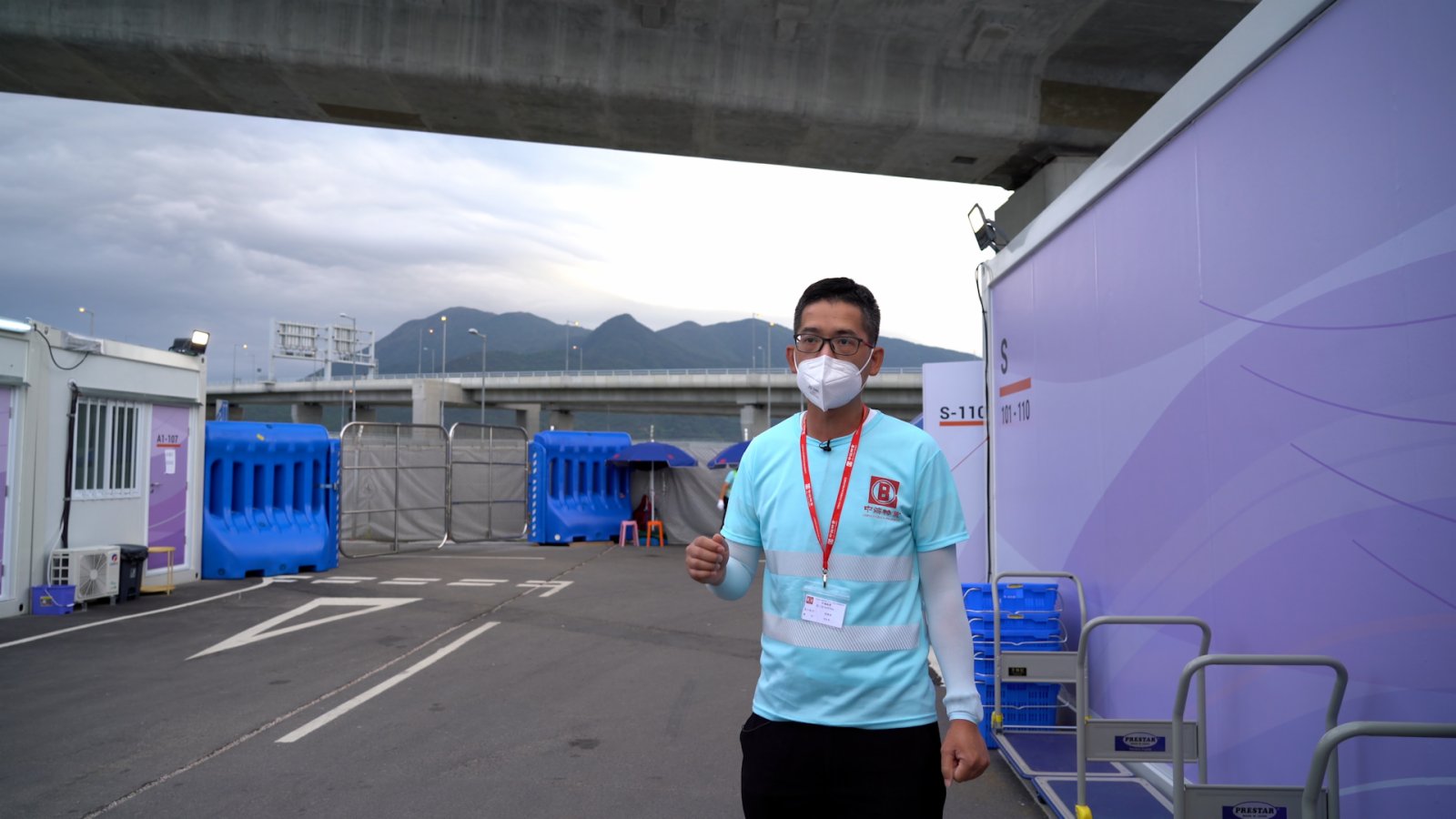 烈日當頭,沒有一片樹蔭;暴雨傾洩,沒有片瓦遮頭。這是在位於港珠澳大橋香港口岸人工島社區隔離設施工作的人們,日日需要面對的挑戰。不少人的臉、手臂被曬得黝黑,戴口罩的部分卻又是原本的膚色。他們卻沒有一個人叫苦,沒有一個人喊累。「這是很有使命感的一份工作。」他們不約而同地說。