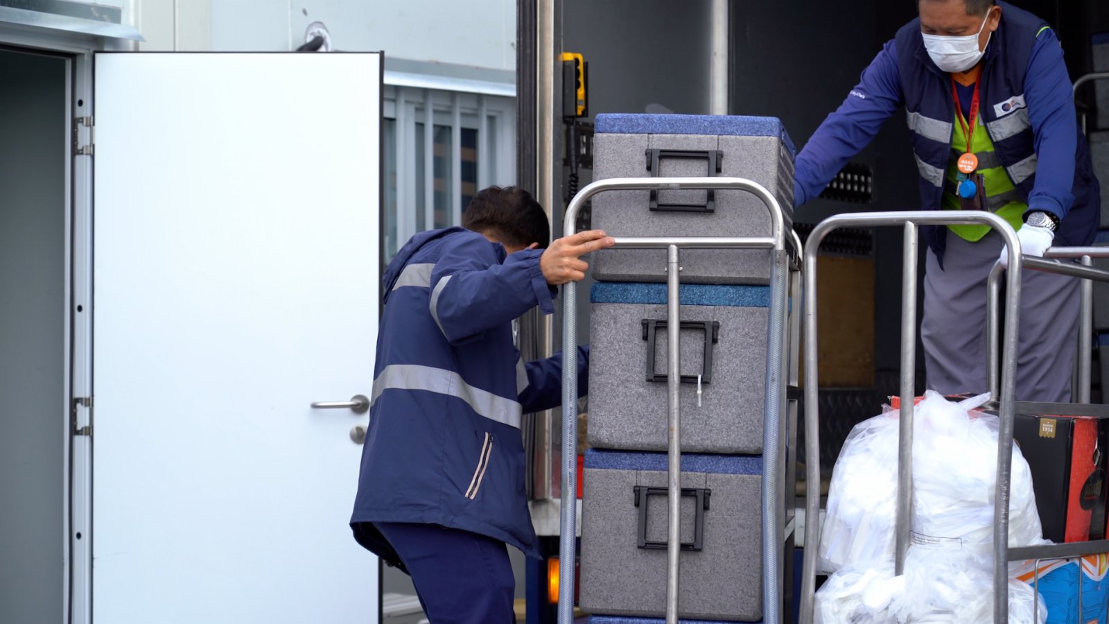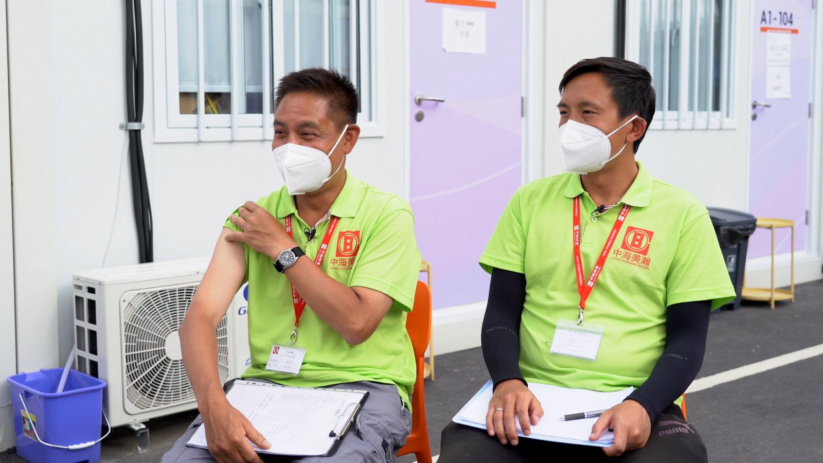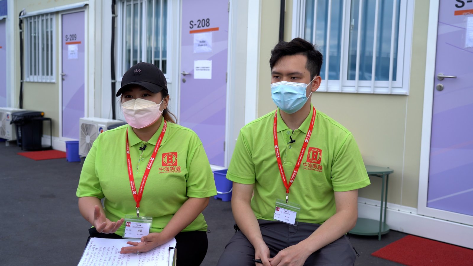陳媚和鄧永俊,是港珠澳大橋方艙醫院的衞生防疫員和衞生監督。他們主要負責方艙醫院的清潔、餐飲物資運輸和日常對院友的照顧。和蔡國樑一樣,他們也是康復的確診者,這讓他們更能與入住院友感同身受,從而能更好地幫助入住者,做好開導工作。鄧永俊提到,所有方艙醫院工作人員都會盡力去關心院友,「可能有些東西第一時間無法提供,但亦會逐步改善服務,滿足入住院友需求。」陳媚說,在方艙醫院這裏更加多的,是關心和幸福。