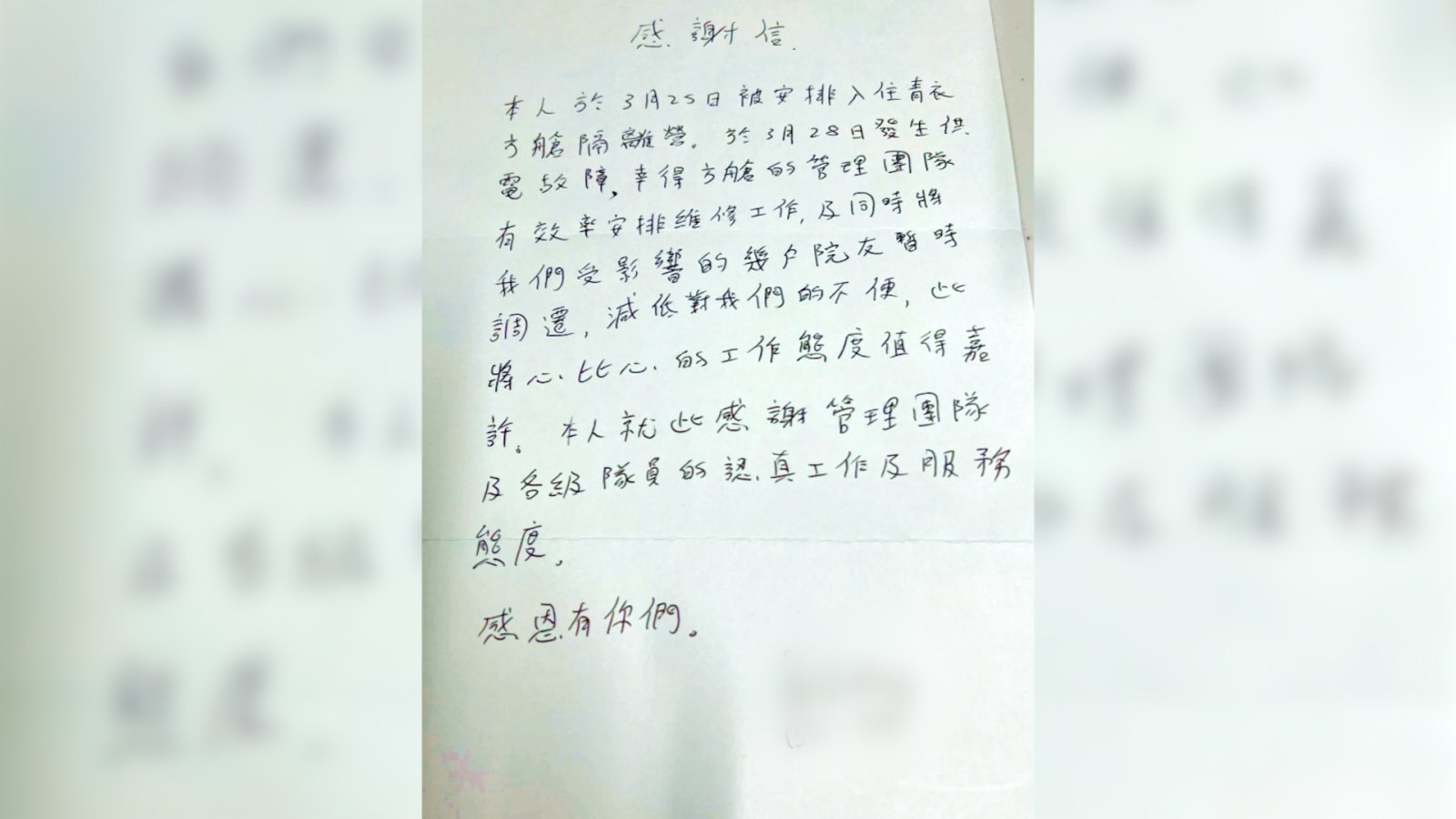 作為方艙醫院的保安,蔡國樑每日見到不同的確診者的入住與康復出院。他分享到,有些院友剛進方艙醫院時,會覺得陌生、無助,但其實大家都知道,政府做這件事,是為了市民的健康着想。「你進來方艙醫院隔離,為自己之餘,更是為了家人和整個香港的市民。」