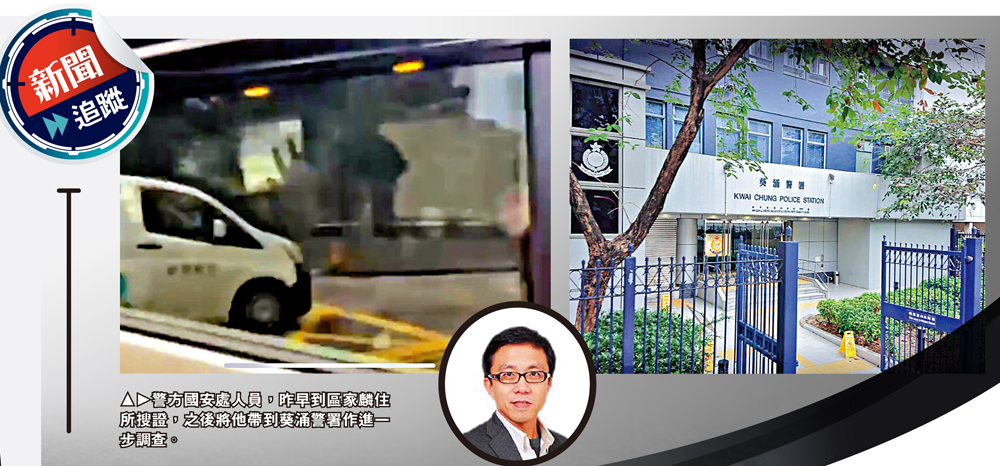 (大公報記者 王樺、李斯達)警方國安處去年底以「串謀發布煽動刊物」罪拘捕《立場新聞》多名現任或前任高層,案件昨日有新發展。國安處人員再以同樣罪名拘捕前《立場》博客作者區家麟,他涉嫌發布多篇煽動性文章,企圖達至引起憎恨或藐視政府、引起對香港司法的憎恨,及慫使他人不守法或不服從合法命令等目的。