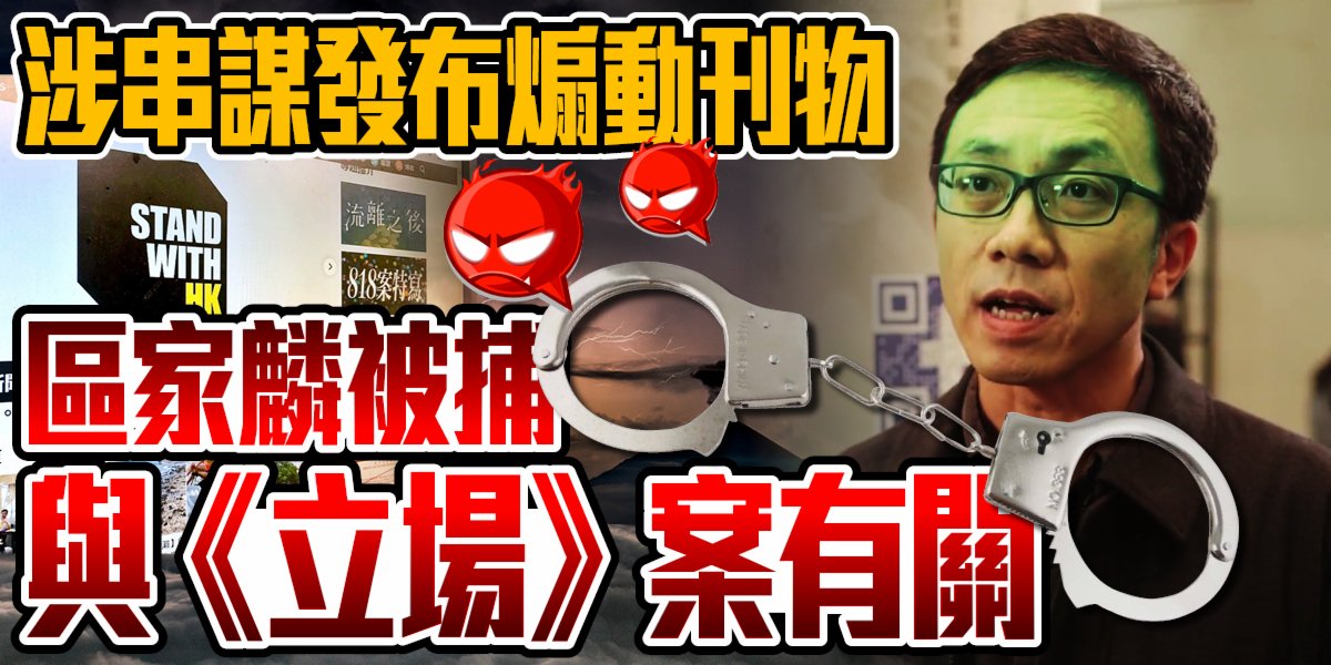 大公文匯全媒體報道,警方國安處以「串謀發布煽動刊物」罪拘捕前《立場新聞》博客作者區家麟,他涉嫌發布多篇煽動性文章,企圖達至引起憎恨或藐視政府、引起對香港司法的憎恨,及慫使他人不守法或不服從合法命令等目的。他被押返葵涌警署扣查,10多小時後至深夜獲准保釋離開。警方不排除有更多人被捕。