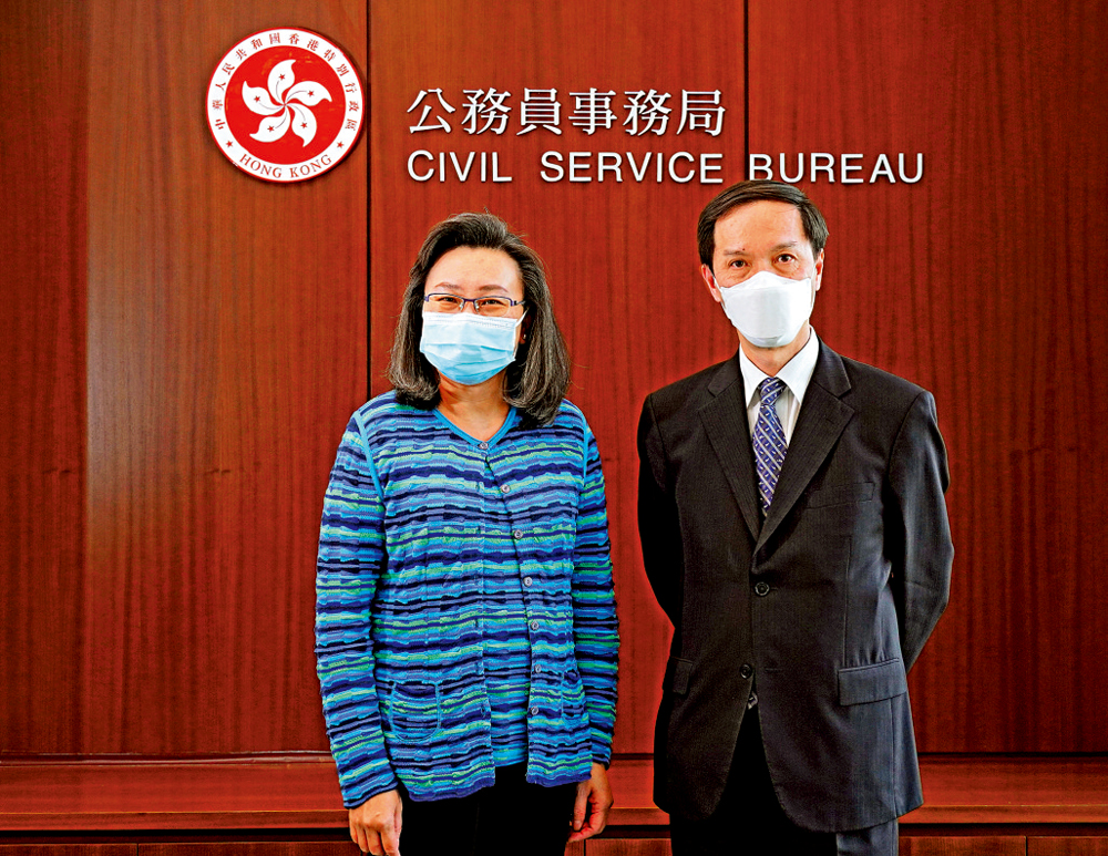 【大公報記者周宇】面對兇猛的第五波疫情,18萬公務員團隊在圍封強檢、檢疫及社區醫療、病毒追蹤、物資供應、政府對內對外訊息發放等方面執行任務。公務員事務局常任秘書長楊何蓓茵、一般職系處長陳信禧近日接受大公文匯傳媒專訪,總結公務員抗疫工作,尤其是在為「一老一幼」接種疫苗方面的經驗。