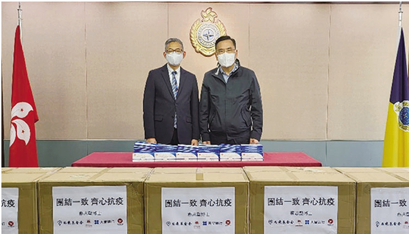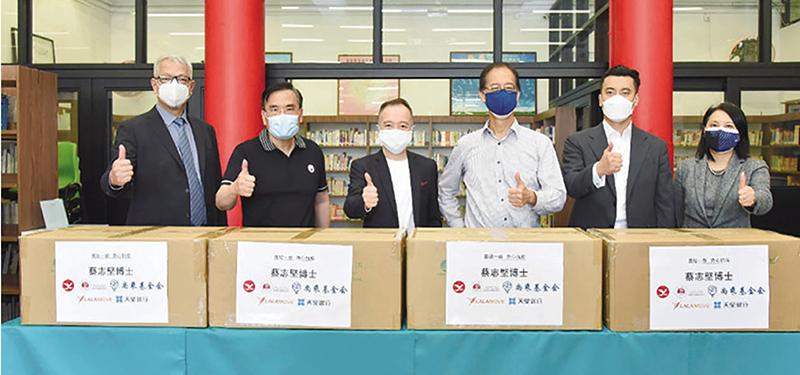 蔡志堅帶領香港青年會、香港青年金融科技協會、尚乘慈善基金會,聯合香港島各界聯合會及天星銀行捐贈五萬套快速抗原測試包贈予香港保安局,日前已全數分別派發給懲教署、入境事務處、民眾安全服務隊、和醫療輔助隊等香港紀律部隊,為他們在抗疫前線之工作提供健康保障。