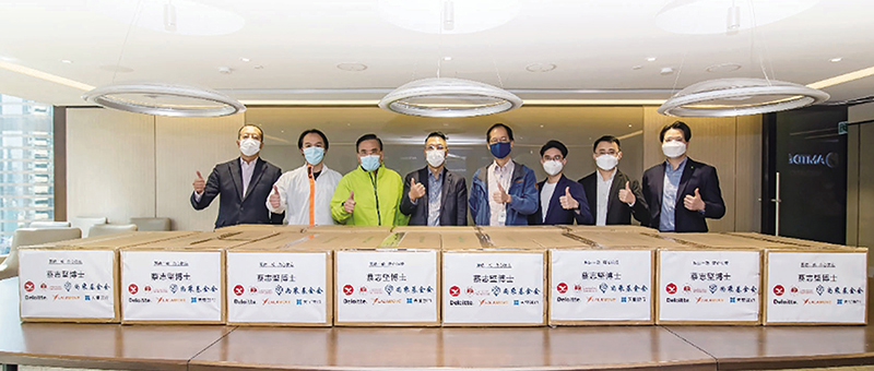 德勤中國主席兼香港德勤公益基金會秘書長周志賢,香港立法會議員、香港青年金融科技協會常務副主席陸瀚民,香港青年會主席、香港青年金融科技協會副主席陳凱榮,德勤中國華南區政府事務組主管合夥人及香港青年金融科技協會常務副主席呂志宏,全國政協委員、尚乘慈善基金會首席執行官、香港桂冠論壇主席唐偉章,尚乘集團副主席、尚乘慈善基金會副總理單日堅,LALAMOVE企業事務總監李志鵬等先後親身走進油尖旺、黃大仙、觀塘、屯門、葵青、離島、荃灣、沙田、深水埗、九龍城、西貢、大埔、北區、元朗、中西區、南區、灣仔、東區等香港18區,向學校運送及共計五萬套快速抗原測試包,期冀團結一致,齊心抗疫。