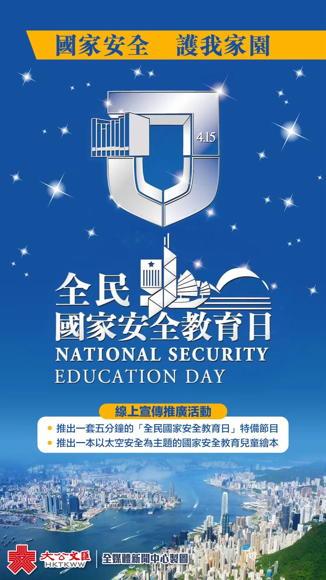 大公文匯全媒體報道,2015年7月1日,第十二屆全國人民代表大會常務委員會第十五次會議通過《中華人民共和國國家安全法》,將每年4月15日定為「全民國家安全教育日」。香港國安法於2020年6月30日公布並同日實施,香港國安法第三條訂明,香港特別行政區負有維護國家安全的憲制責任,應當履行維護國家安全的職責;而第十條則訂明香港特區應開展國家安全教育,提高香港居民的國家安全意識和守法意識。