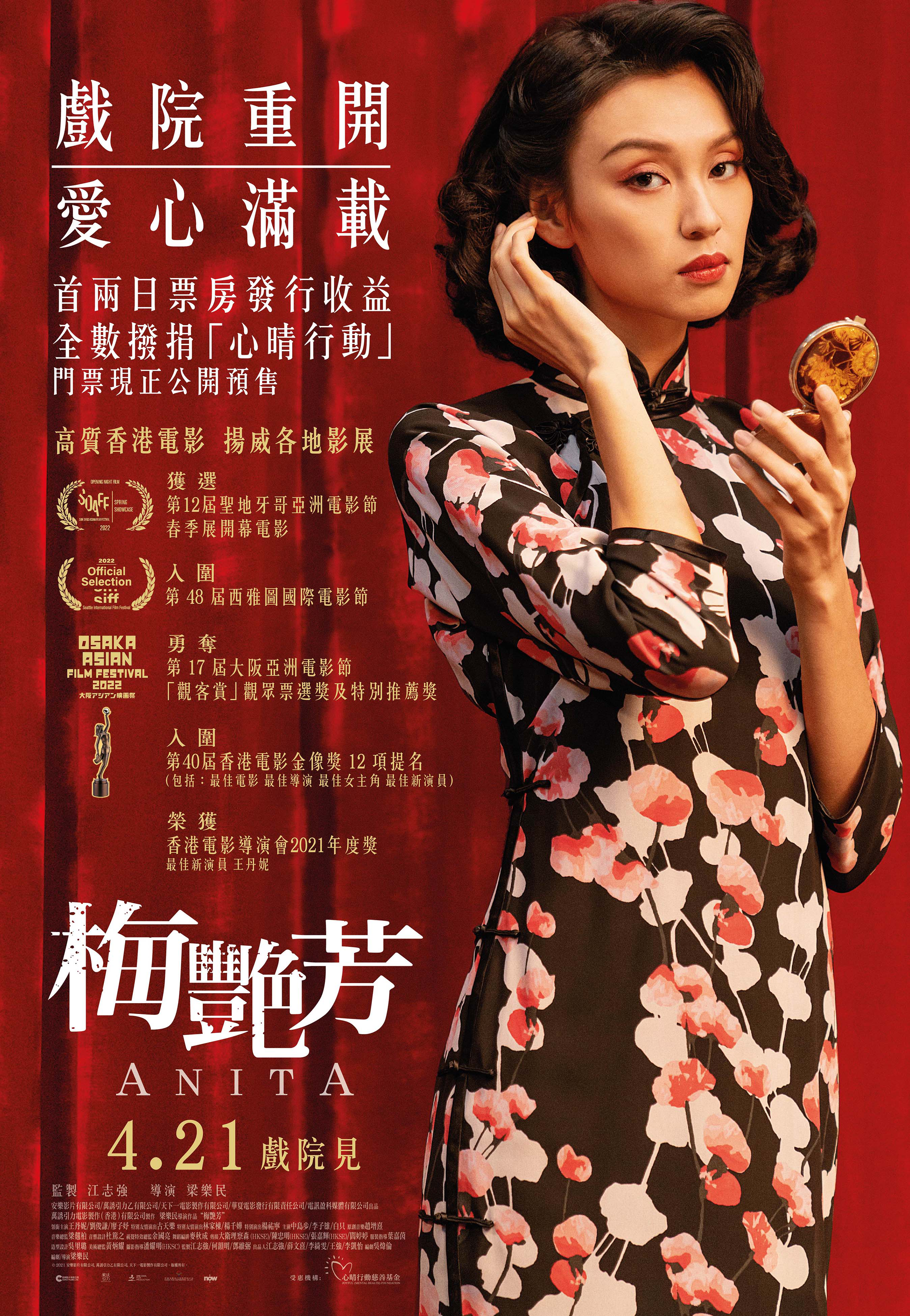 電影《梅艷芳》將於4月21日戲院重開。首兩日(4月21及22日)票房發行收益會全數撥捐「心晴行動」作慈善用途,與香港市民共渡難關。